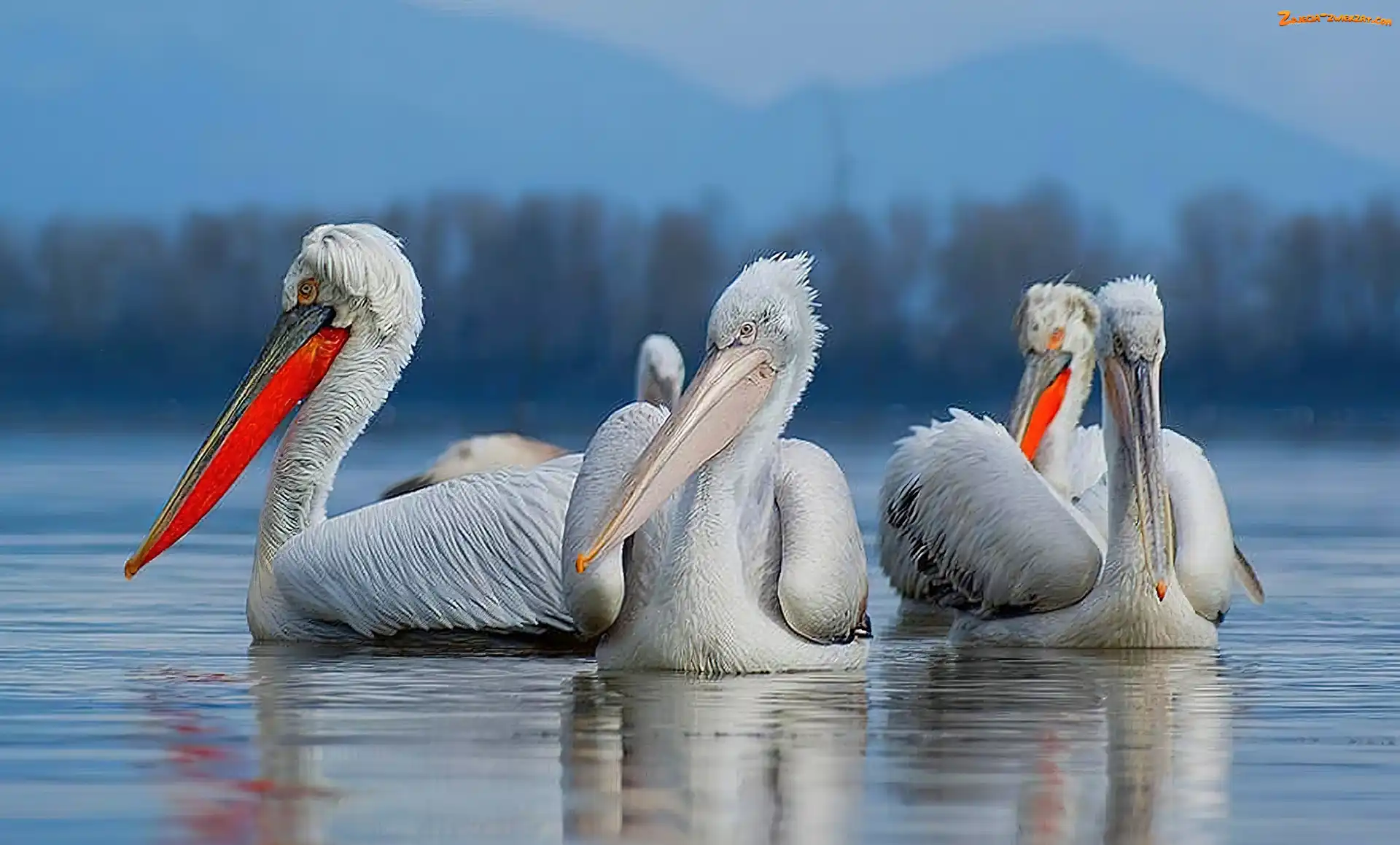Zdjęcie: Jezioro, Las, Pelikany, Góry