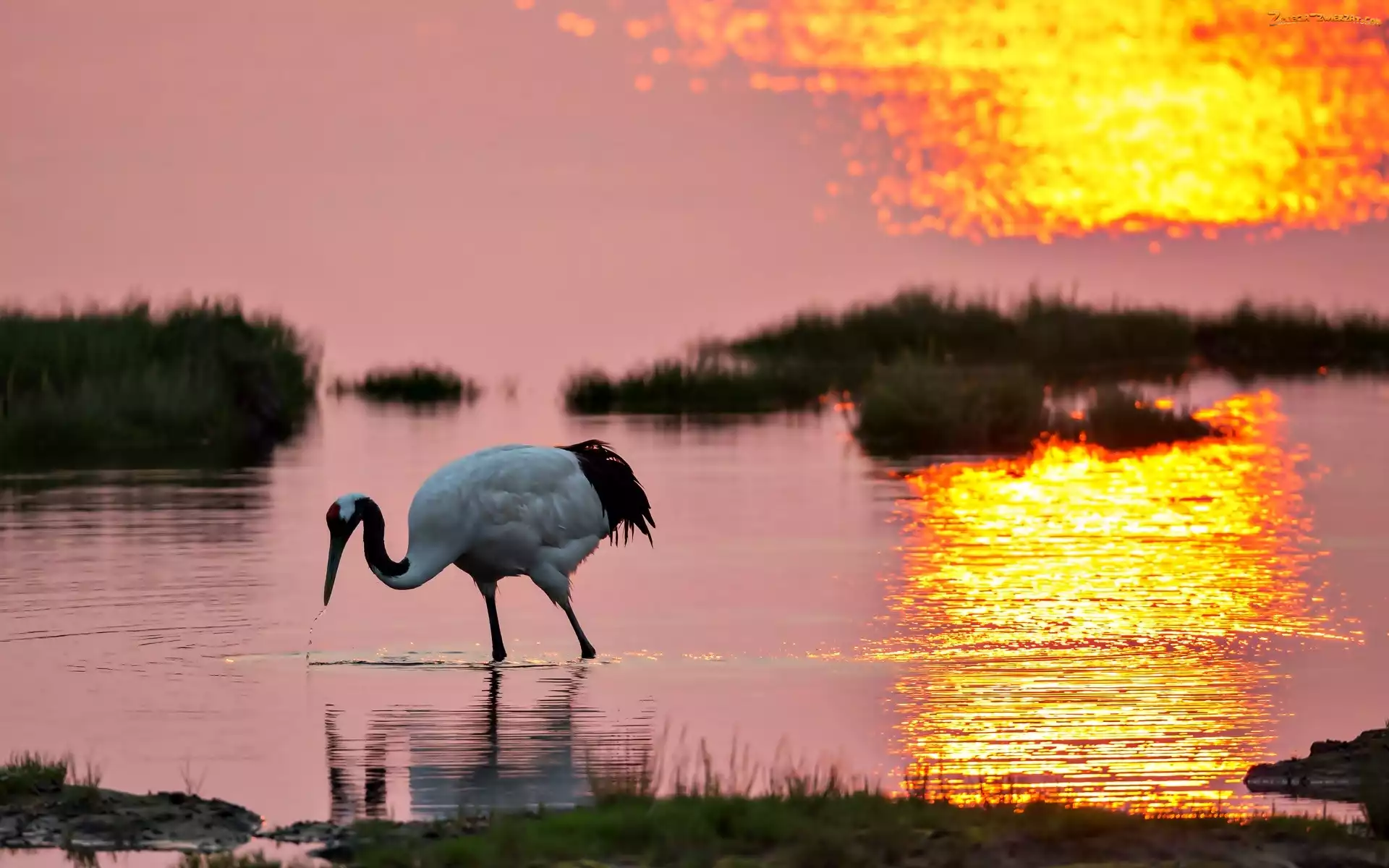 Jezioro, Żuraw, Wschód Słońca, Świt