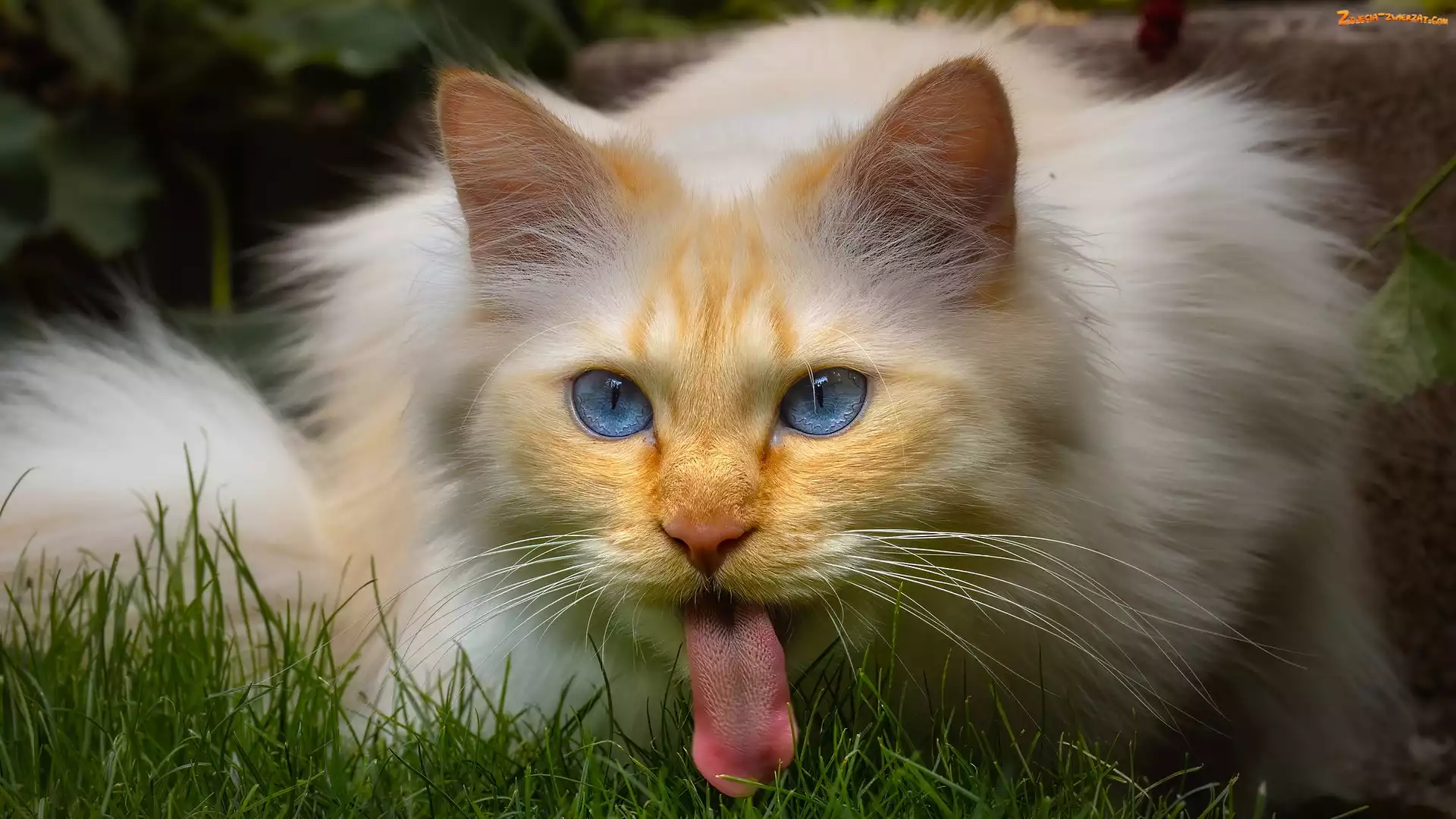 Zdjęcie: Język, Wystawiony, Niebieskooki, Długowłosy, Kot