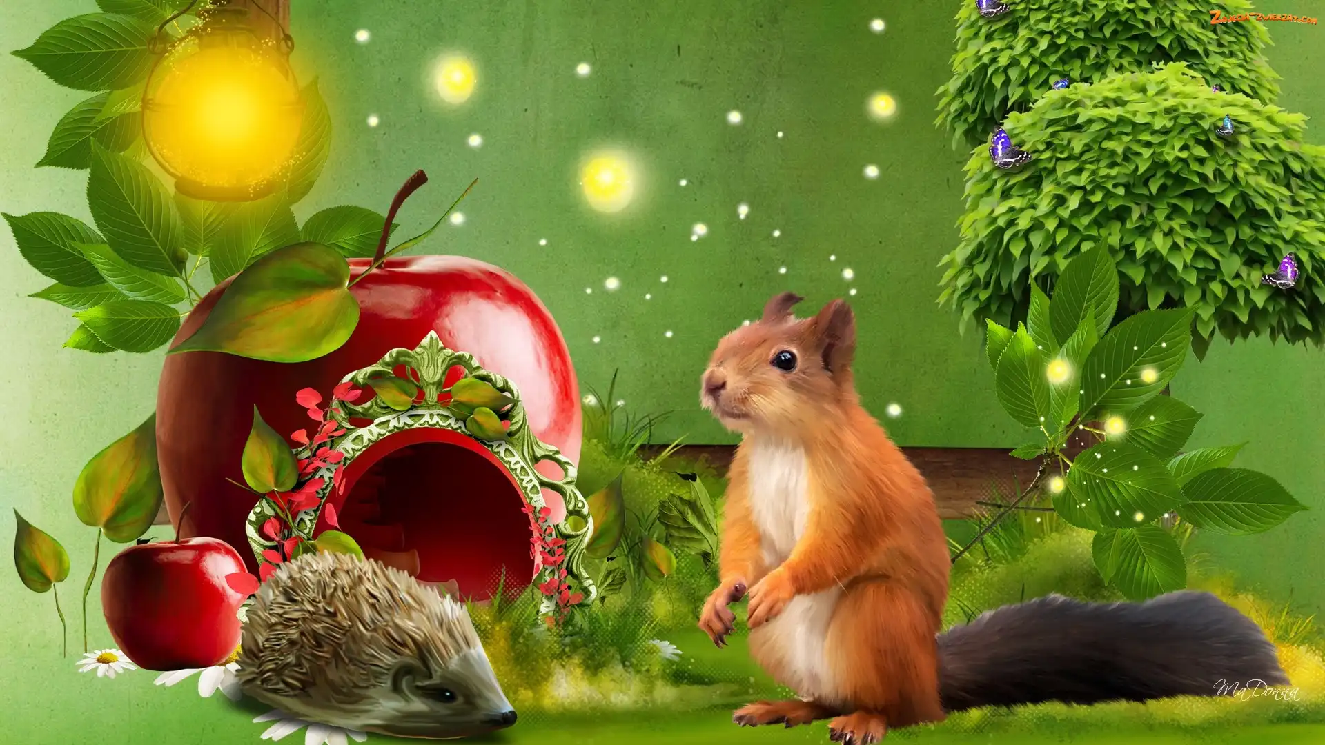 Zdjęcie: Jeżyk, Grafika, Wiewiórka, Jabłko