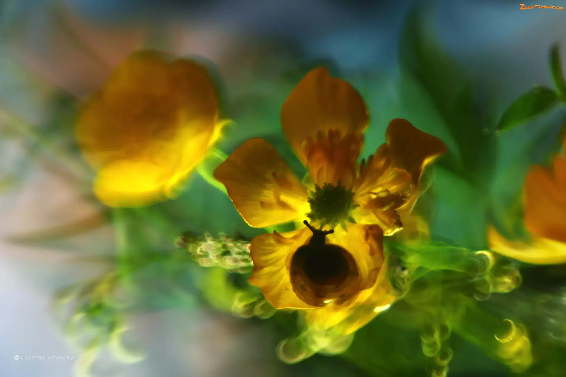 Żółty, Ślimak, Kaczeniec, Kwiat