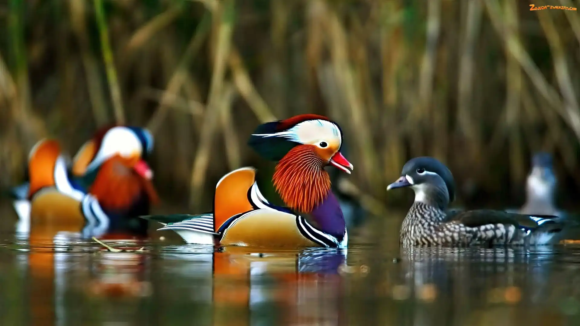 Zdjęcie: Jezioro, Kaczki, Rozmycie, Mandarynki