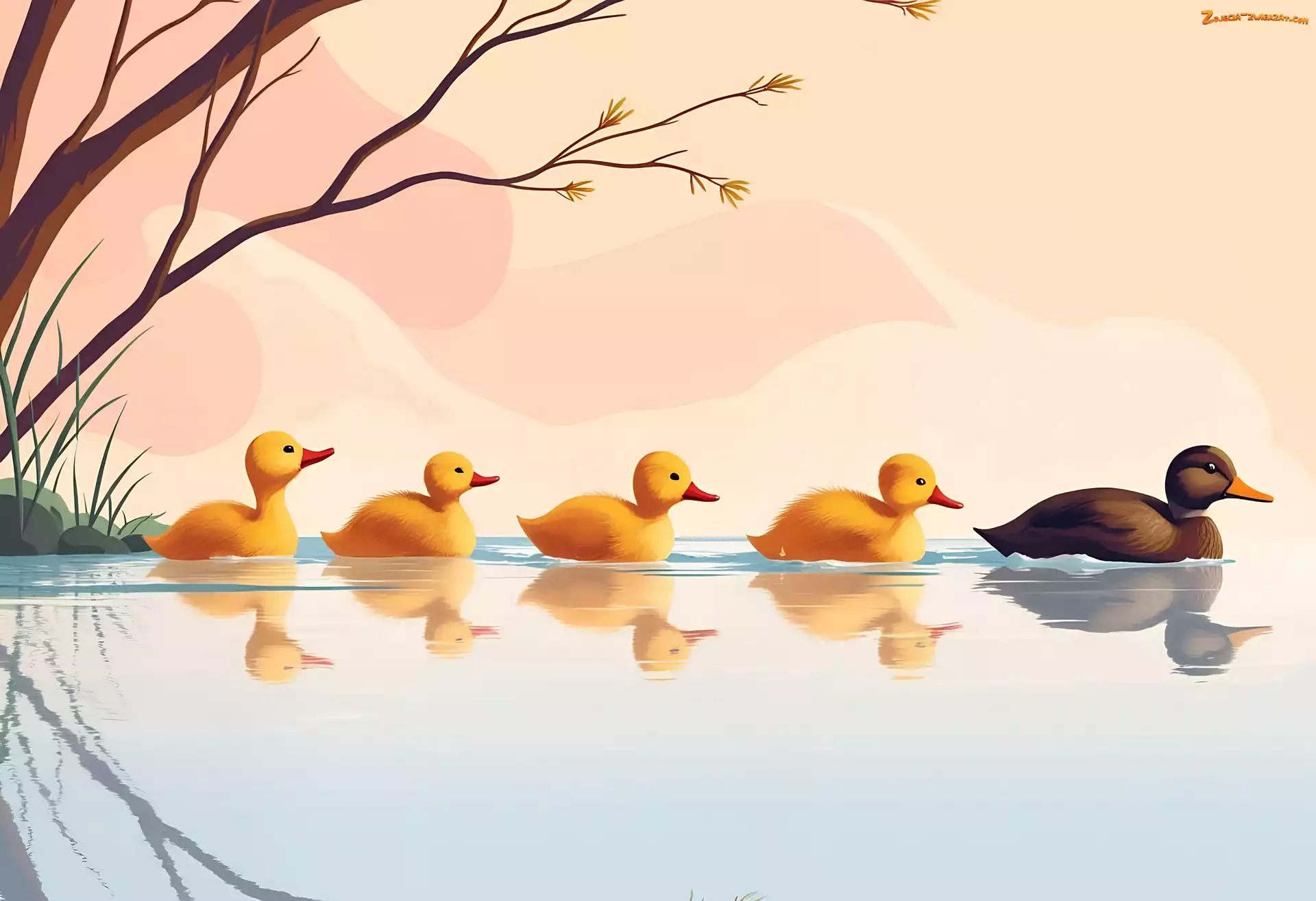 Zdjęcie: Woda, Kaczuszki, Grafika, Kaczki, Cztery
