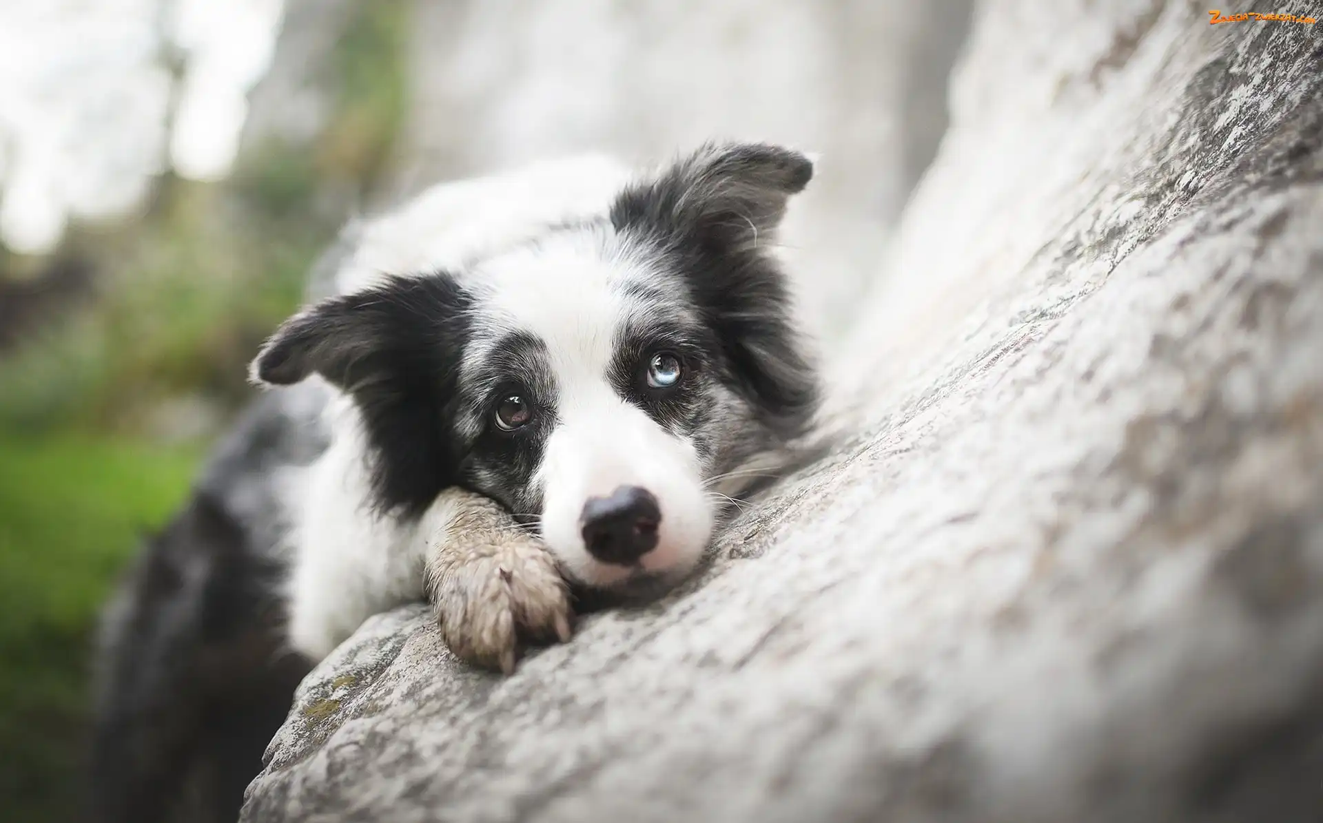 Zdjęcie: Kamień, Border collie, Pyszczek
