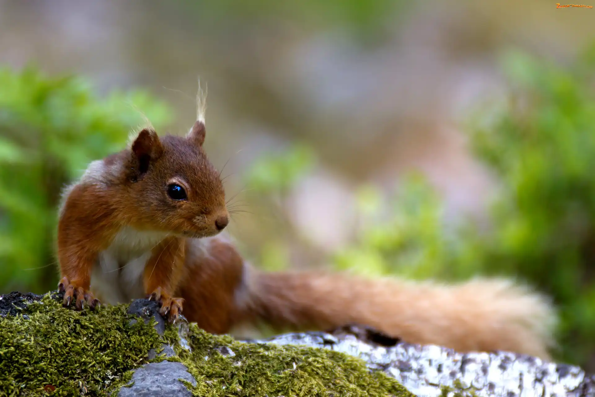 Zdjęcie: Kamień, Kita, Wiewiórka, Mech