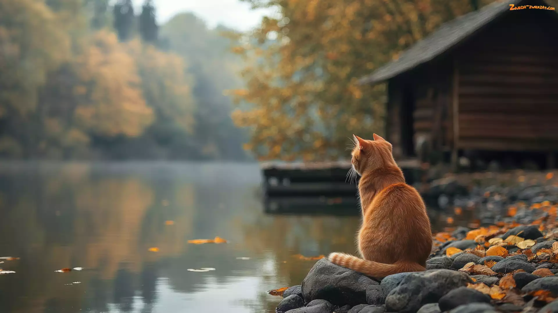 Zdjęcie: Jezioro, Kamienie, Dom, Rudy, Kot