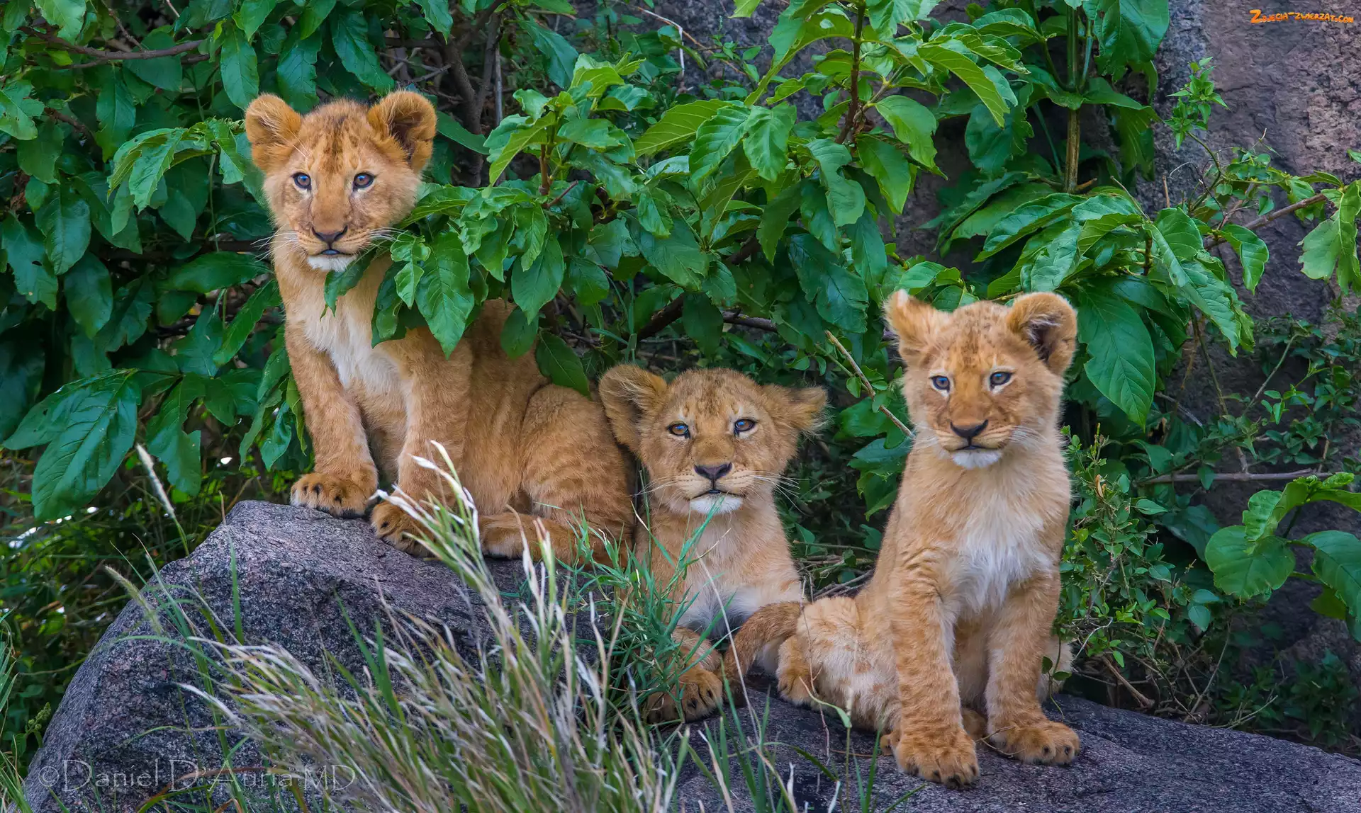 Zdjęcie: Kamienie, Krzewy, Lwy, Młode, Lwiątka