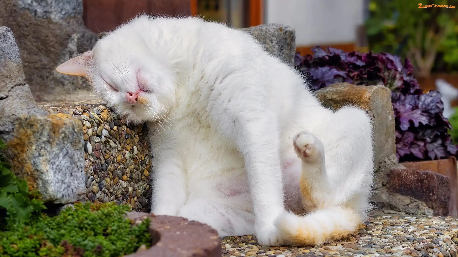 Zdjęcie: Kamienie, Biało-rudy, Kot