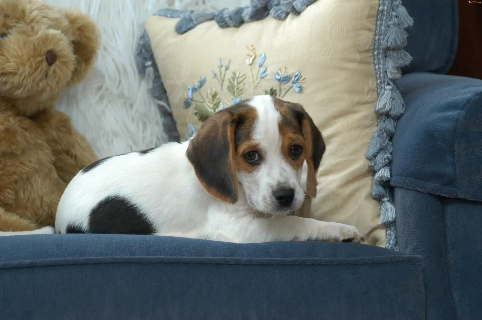 Zdjęcie: Kanapa, Leżący, Miś, Pluszowy, Pies, Poduszka