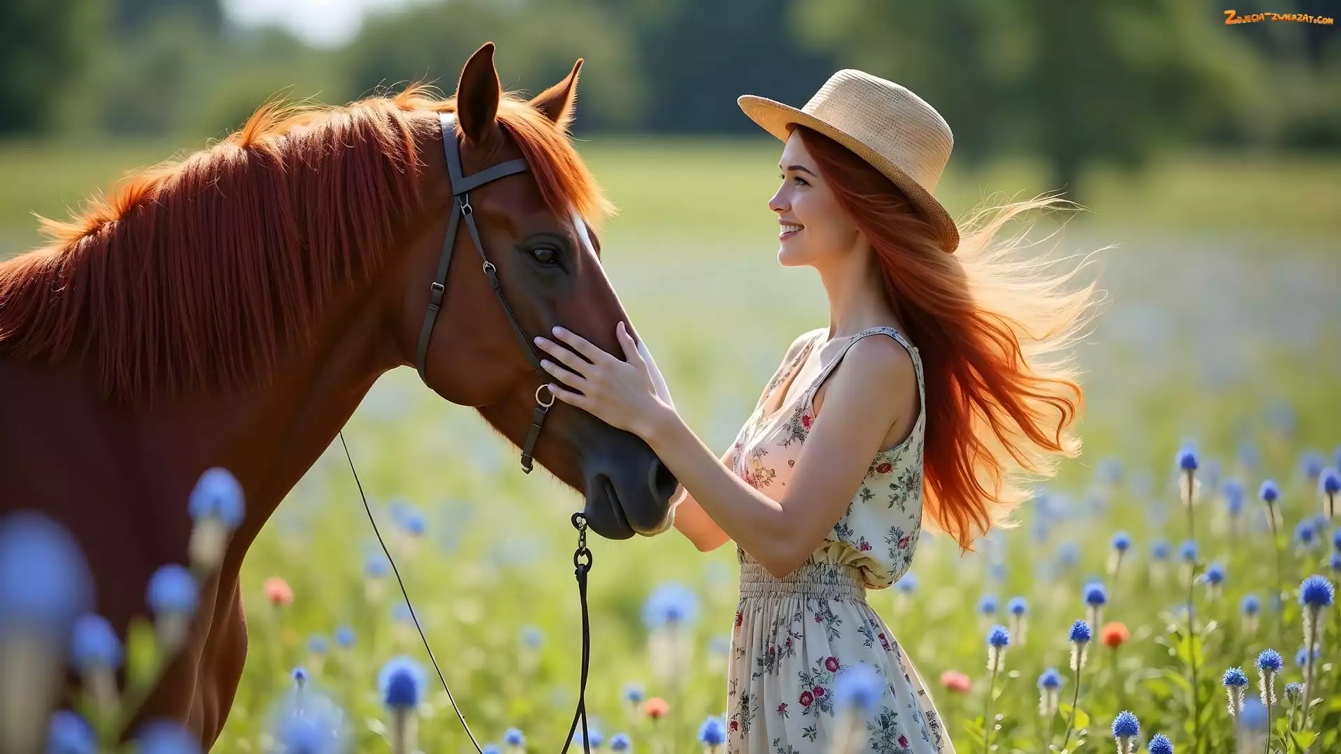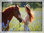 Rudowłosa, Kobieta, Koń, Kapelusz