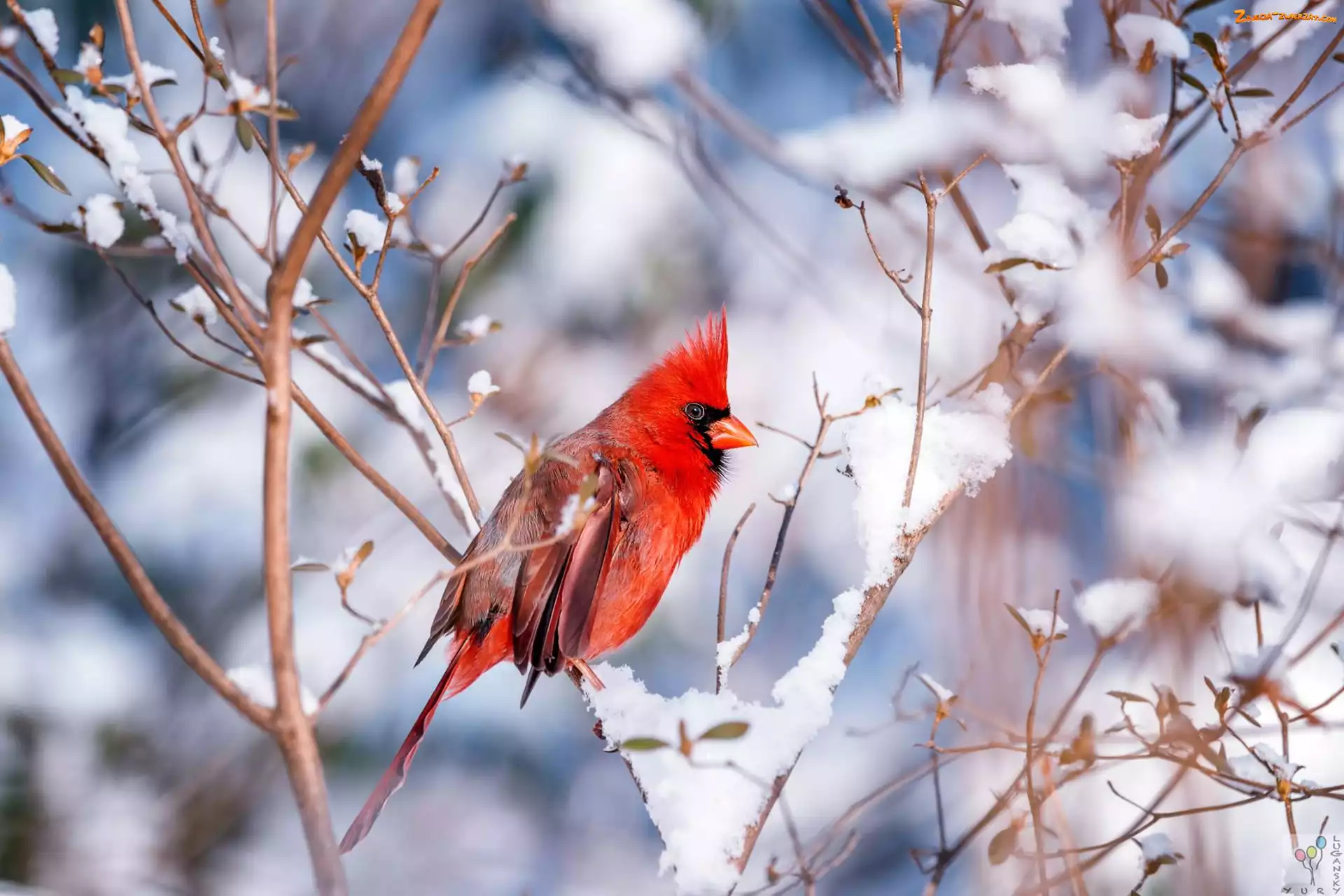 Kardynał szkarłatny, Zima, Ptak, Gałązki