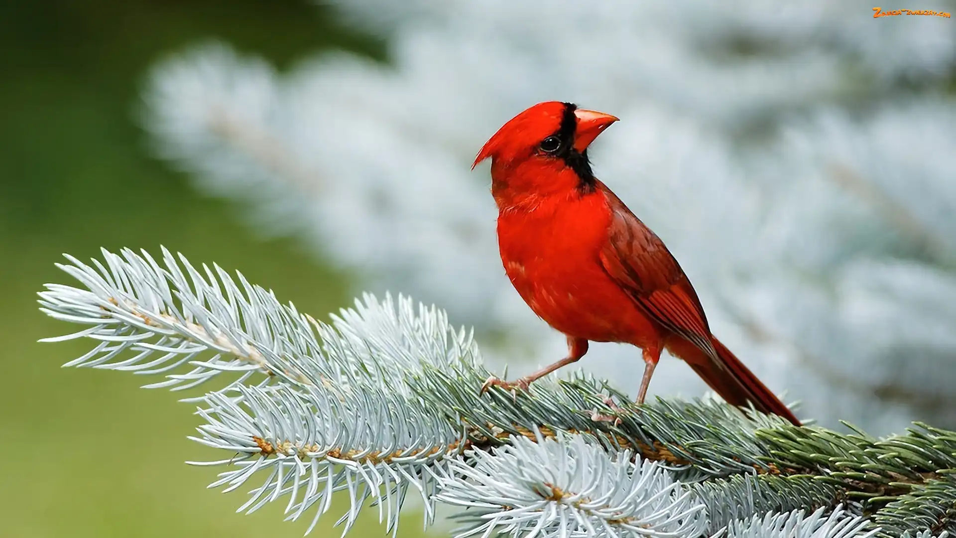 Kardynałek, Choinka, Drzewo, Samczyk