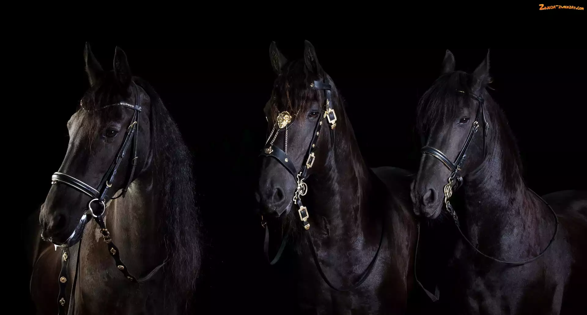 Zdjęcie: Kare, Czarne tło, Trzy, Konie