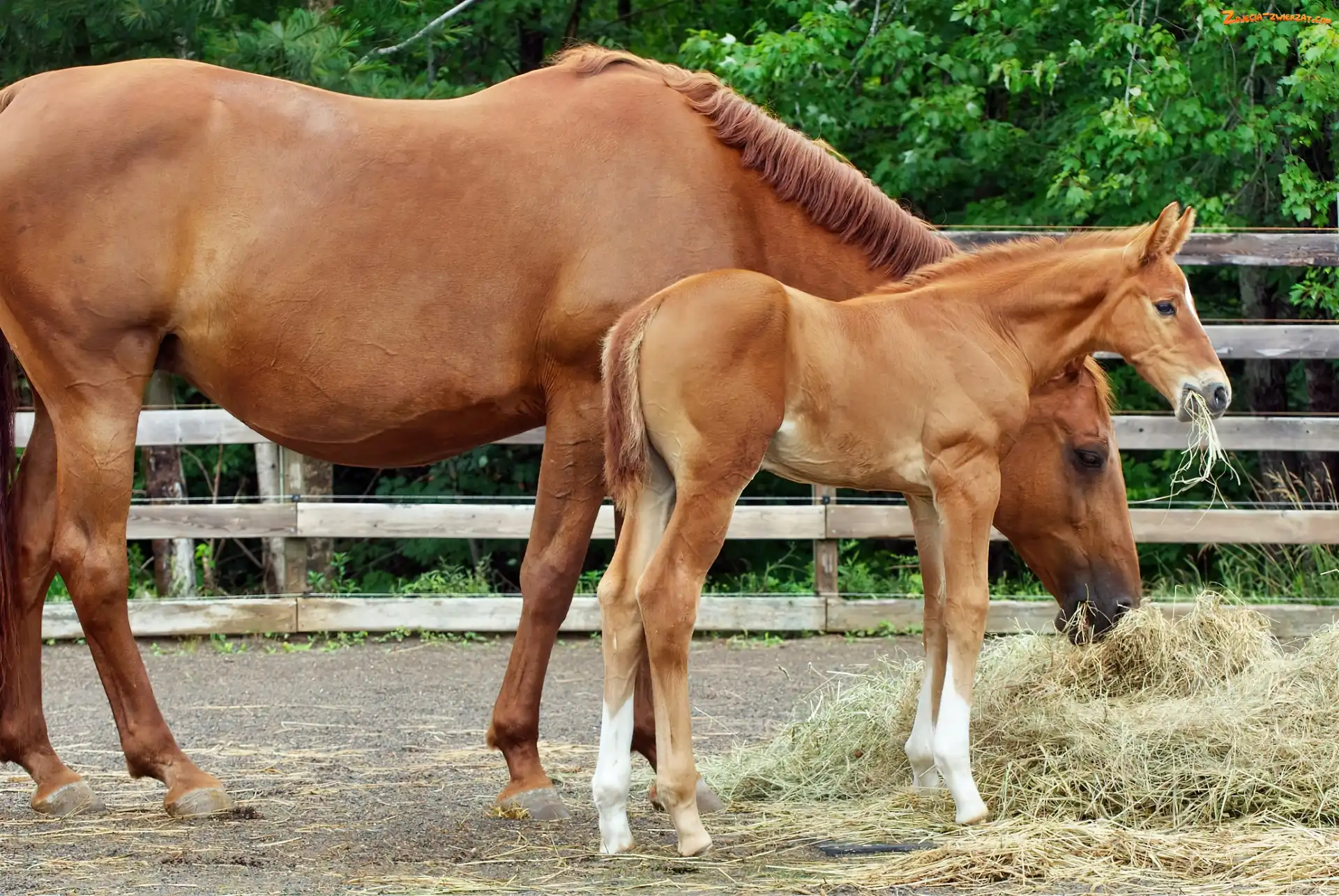 Zdjęcie: Klacz, Siano, Konie, Zrebię