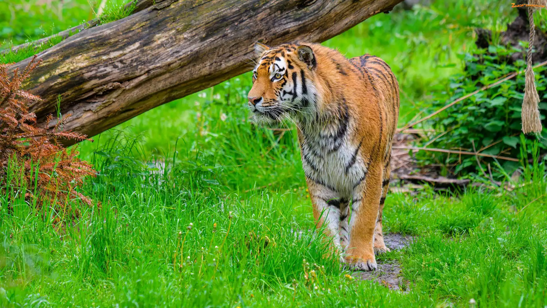 Zdjęcie: Kłoda, Tygrys, Trawa
