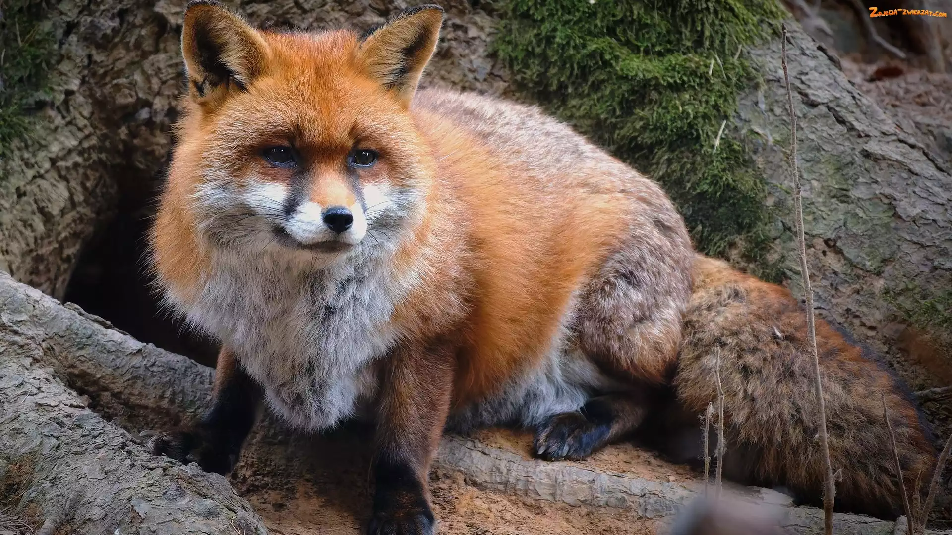 Siedzący, Lis, Drzewa, Kłody