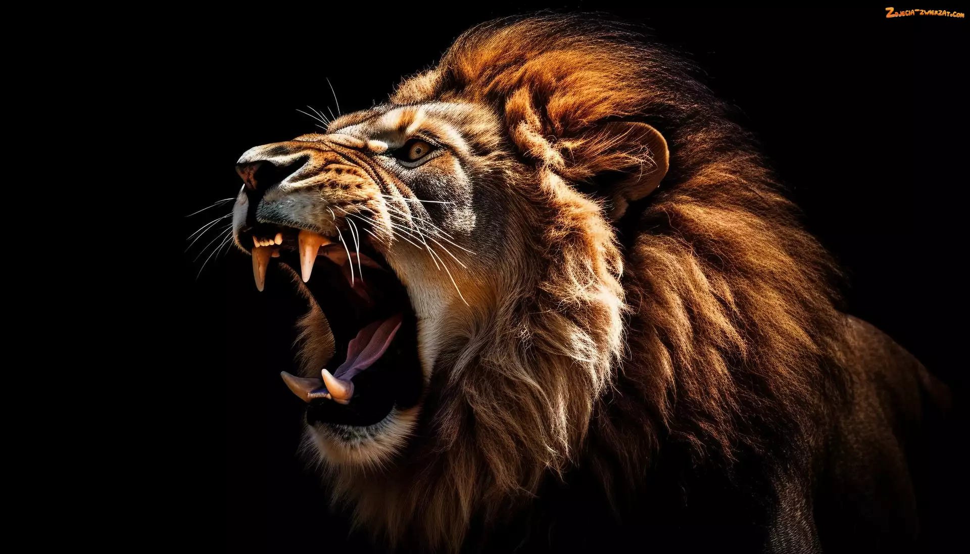 Zdjęcie: Czarne, Lew, Głowa, Kły, AI, Grzywa, Tło