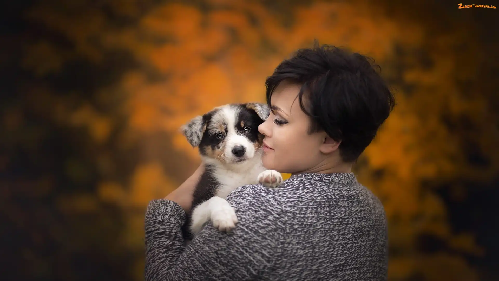 Kobieta, Chocolate tricolour merle, Border collie, Szczeniak, Umaszczenie