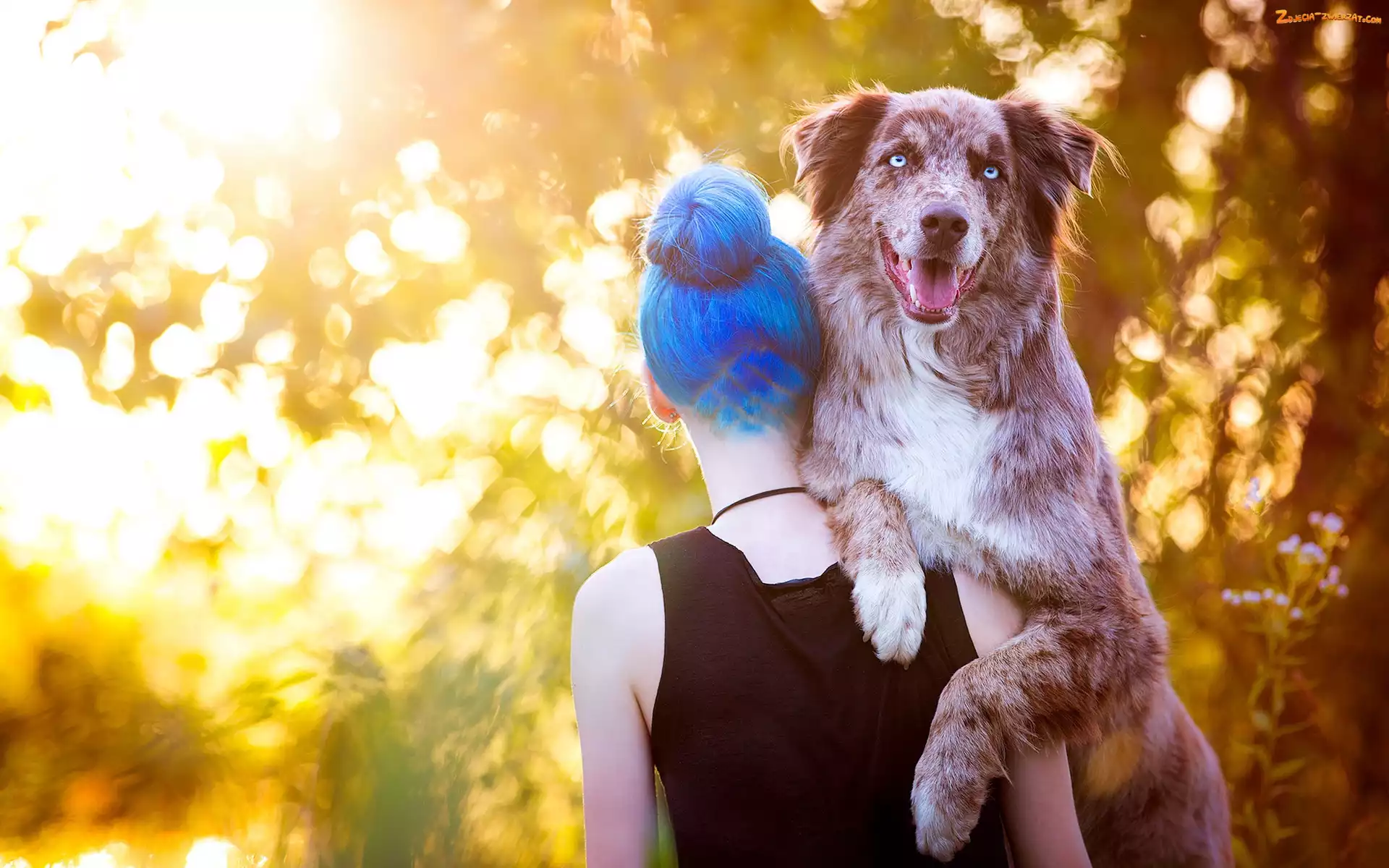 Zdjęcie: Kobieta, Włosy, Owczarek australijski, Niebieskie