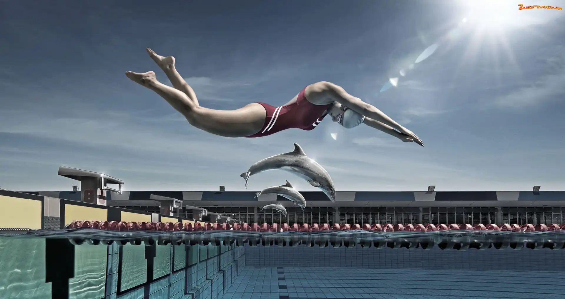 Kobieta, Zawody, Basen, Delfiny
