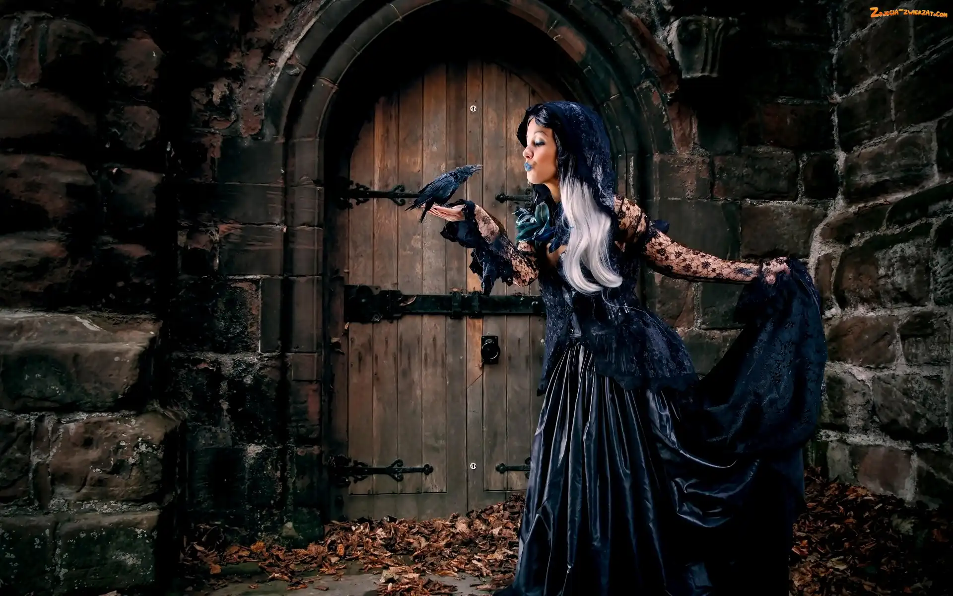 Zdjęcie: Kobieta , Mury, Kruk, Suknia, Drzwi, Czarna