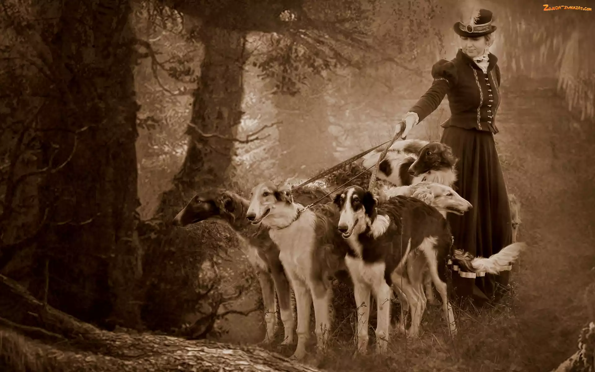 Zdjęcie: Kobieta, Stara, Rosyjskie, Charty, Fotografia, Psy