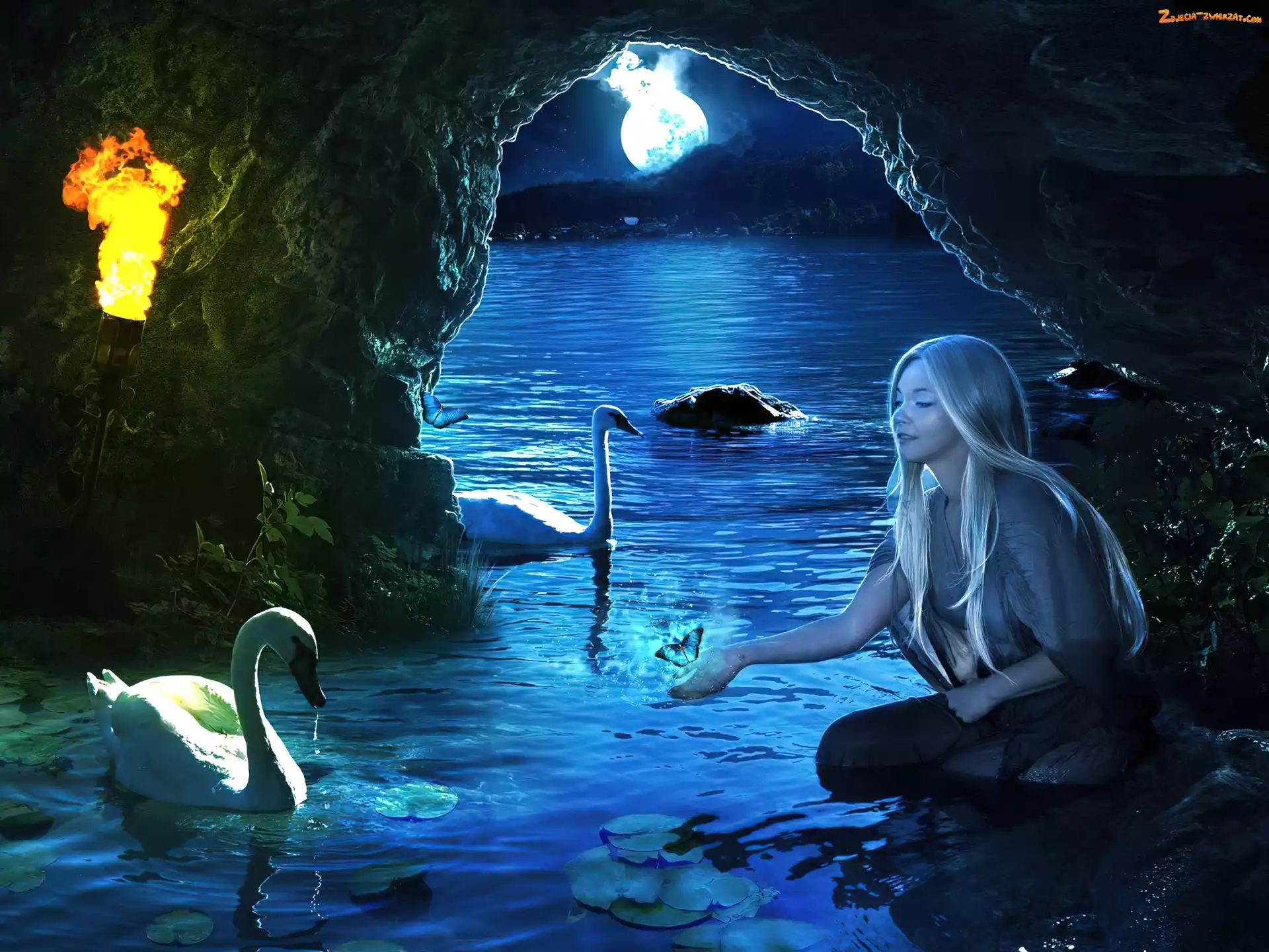 Księżyc, Kobieta, Łabędzie