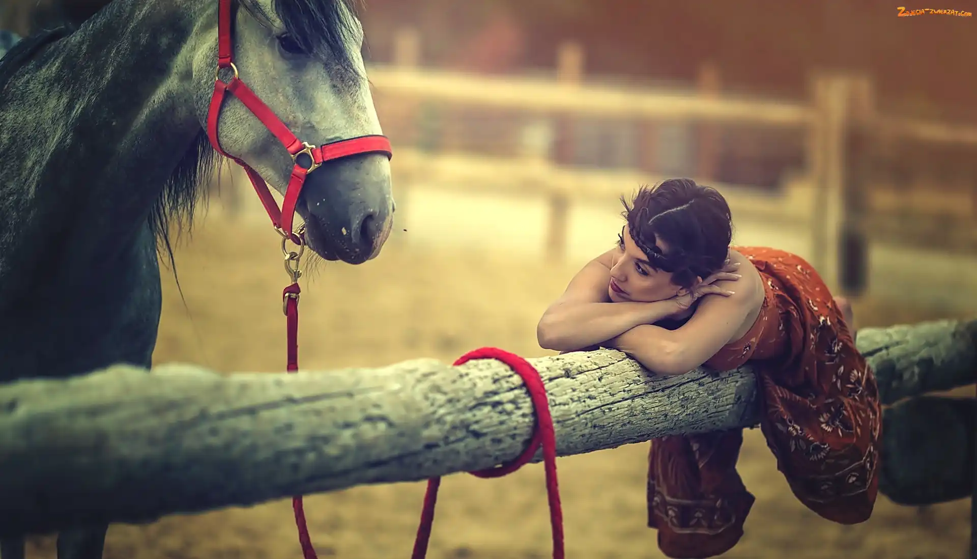 Zdjęcie: Kobieta, Kon, Leżąca, Ogrodzenie