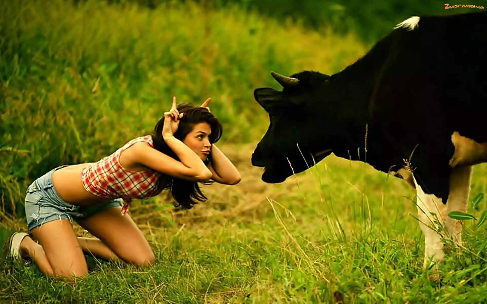 Zdjęcie: Śmieszne, Kobieta, Krowa