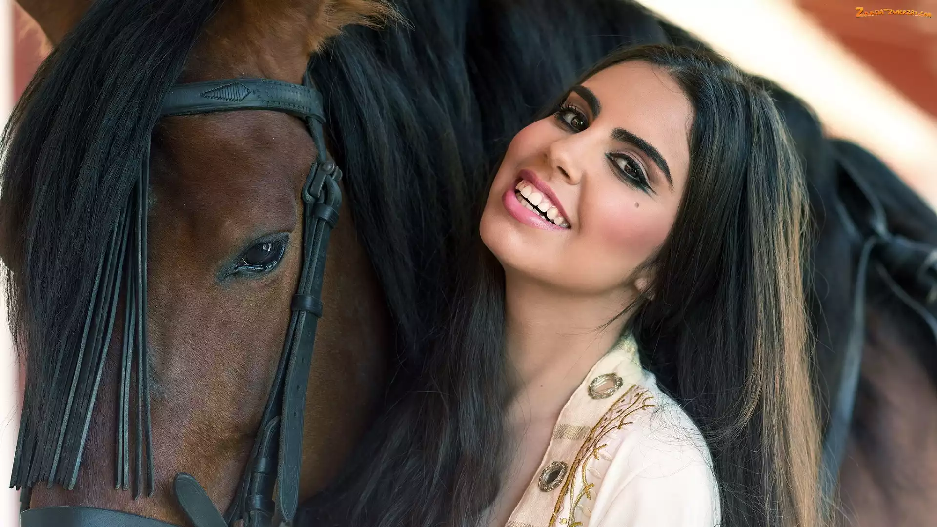 Zdjęcie: Kobieta, Koń, Uśmiechnięta, Szatynka