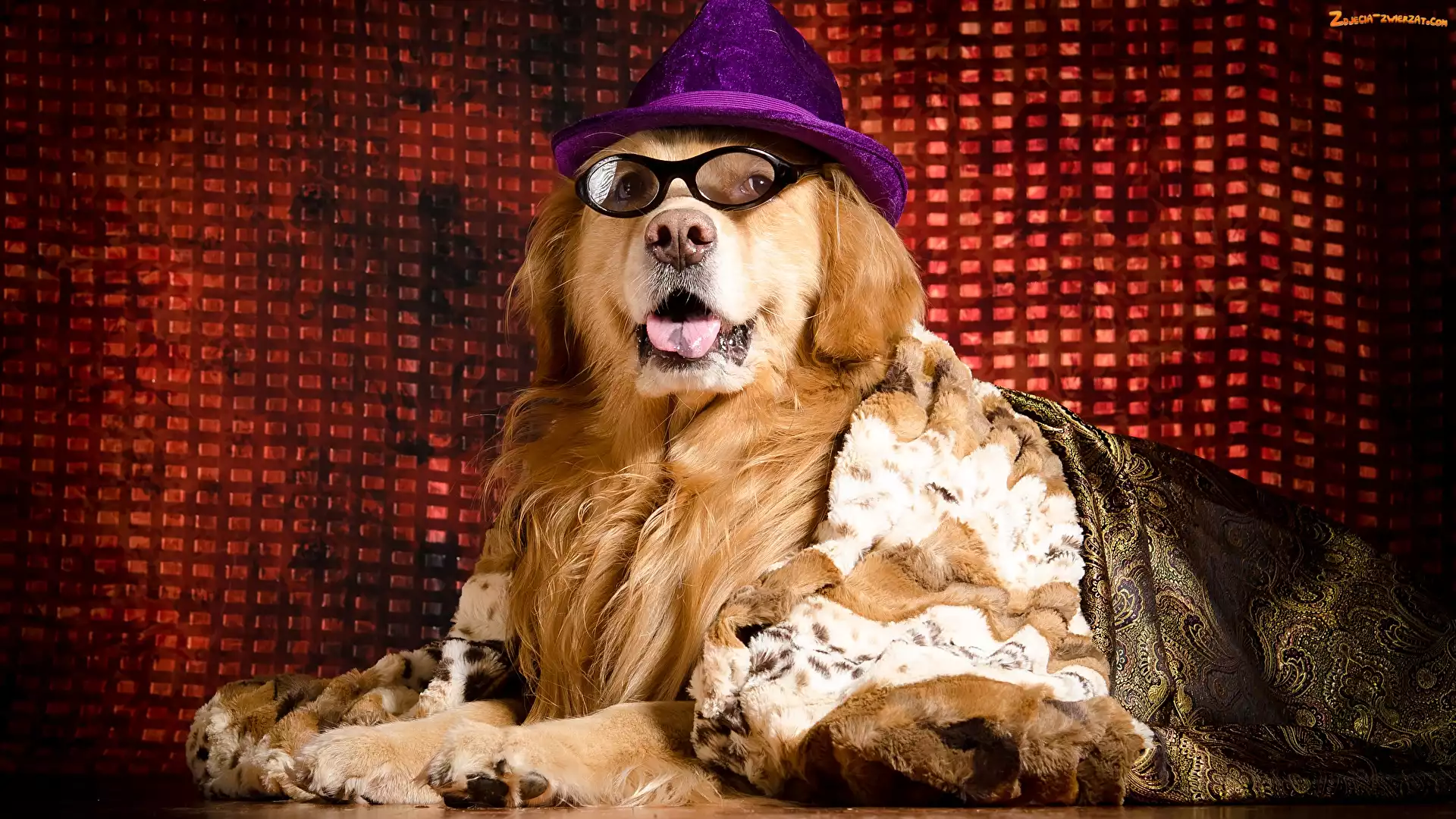 Zdjęcie: Koc, Okulary, Golden retriever, Pies, Kapelusz