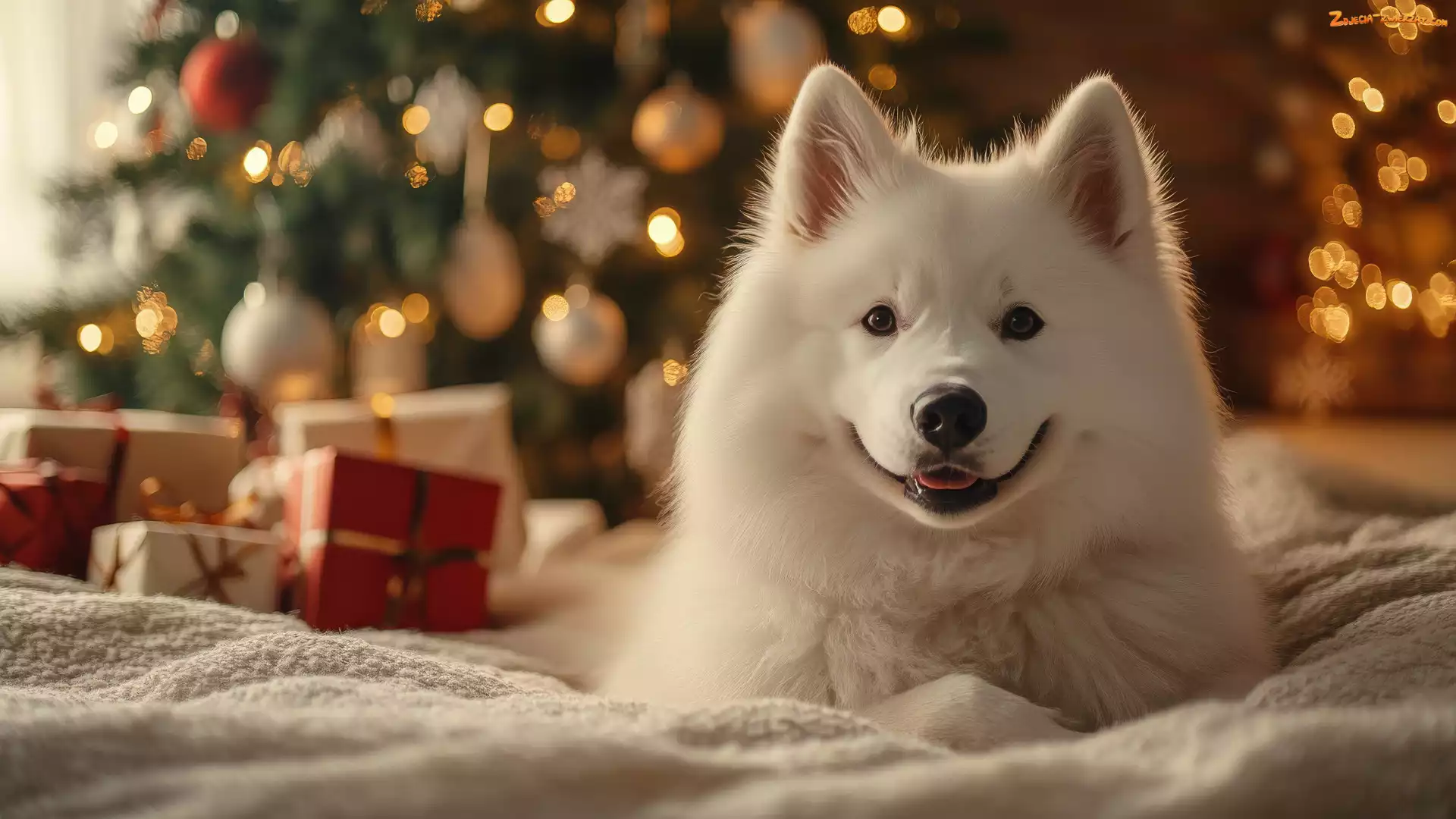 Zdjęcie: Grafika, Prezenty, Pies, Koc, Choinka, Światełka