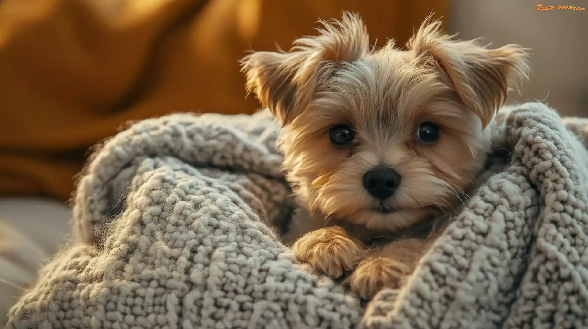 Zdjęcie: Spojrzenie, Yorkshire terrier, Koc, Pies, Szczeniak