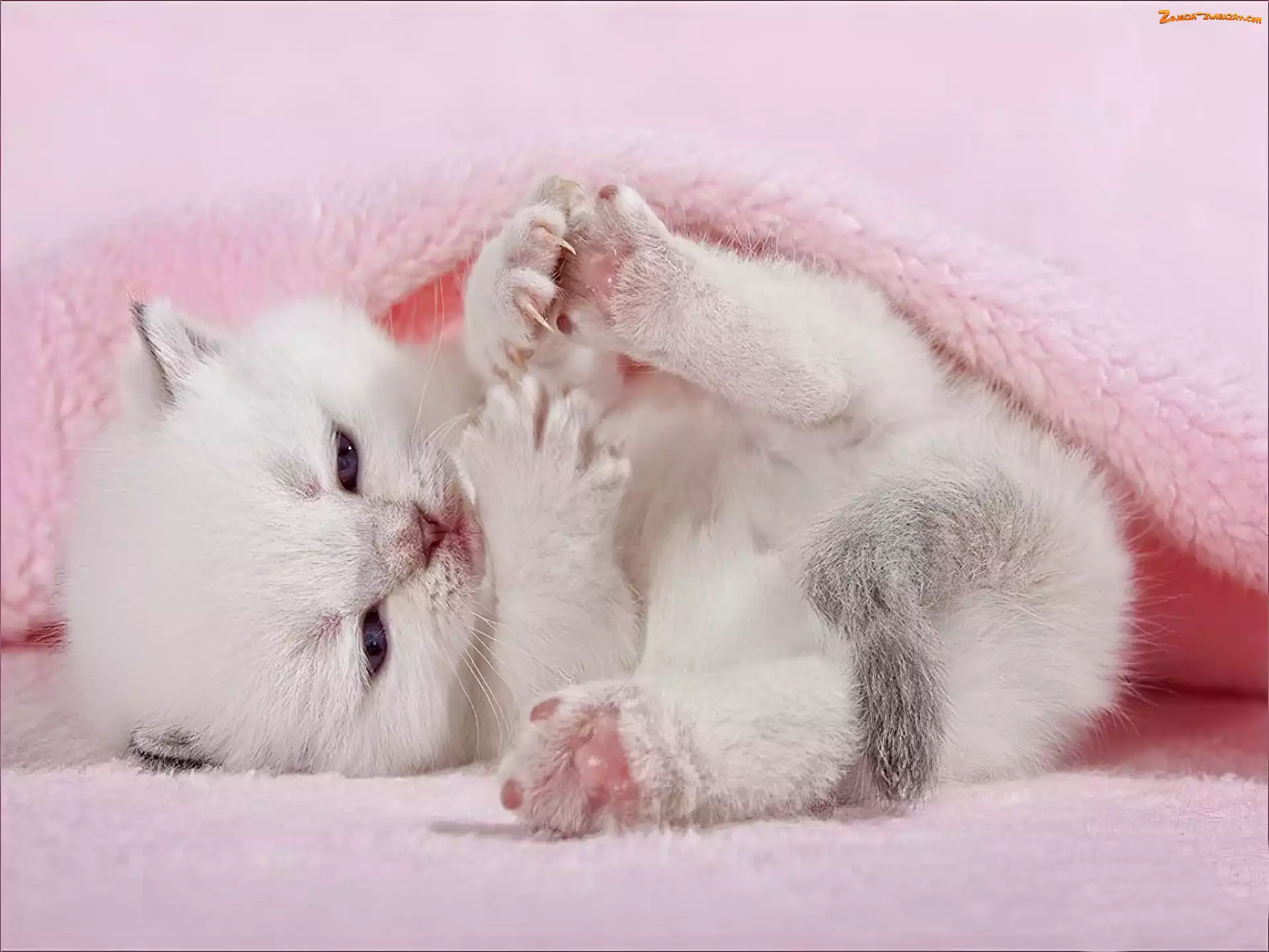 Zdjęcie: Kocyk, Różowy, Biały, Mały, Kotek