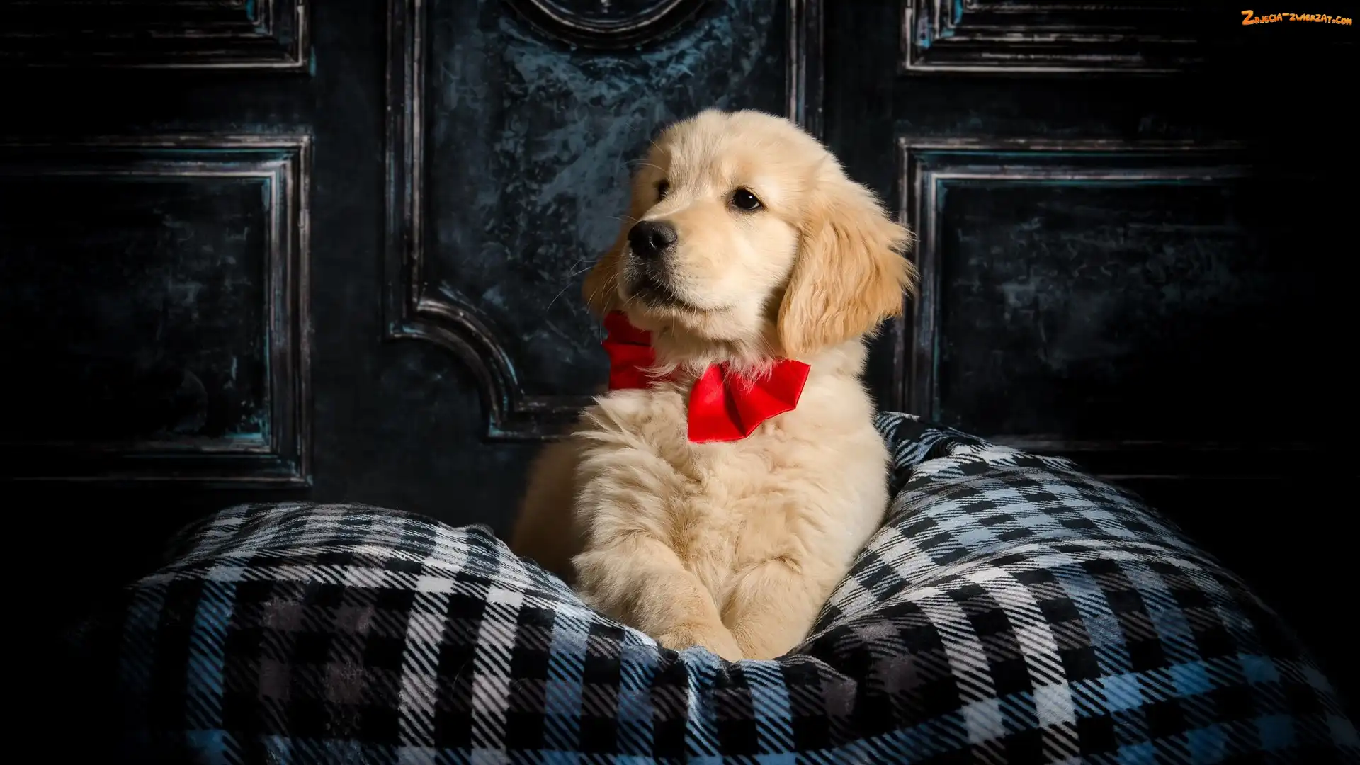 Zdjęcie: Czerwona, Golden retriever, Kokarda, Pies, Szczeniak