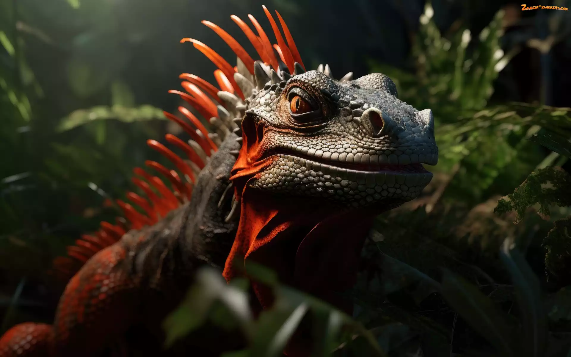 Zdjęcie: Czerwone, Kolce, Grafika, Legwan, Głowa