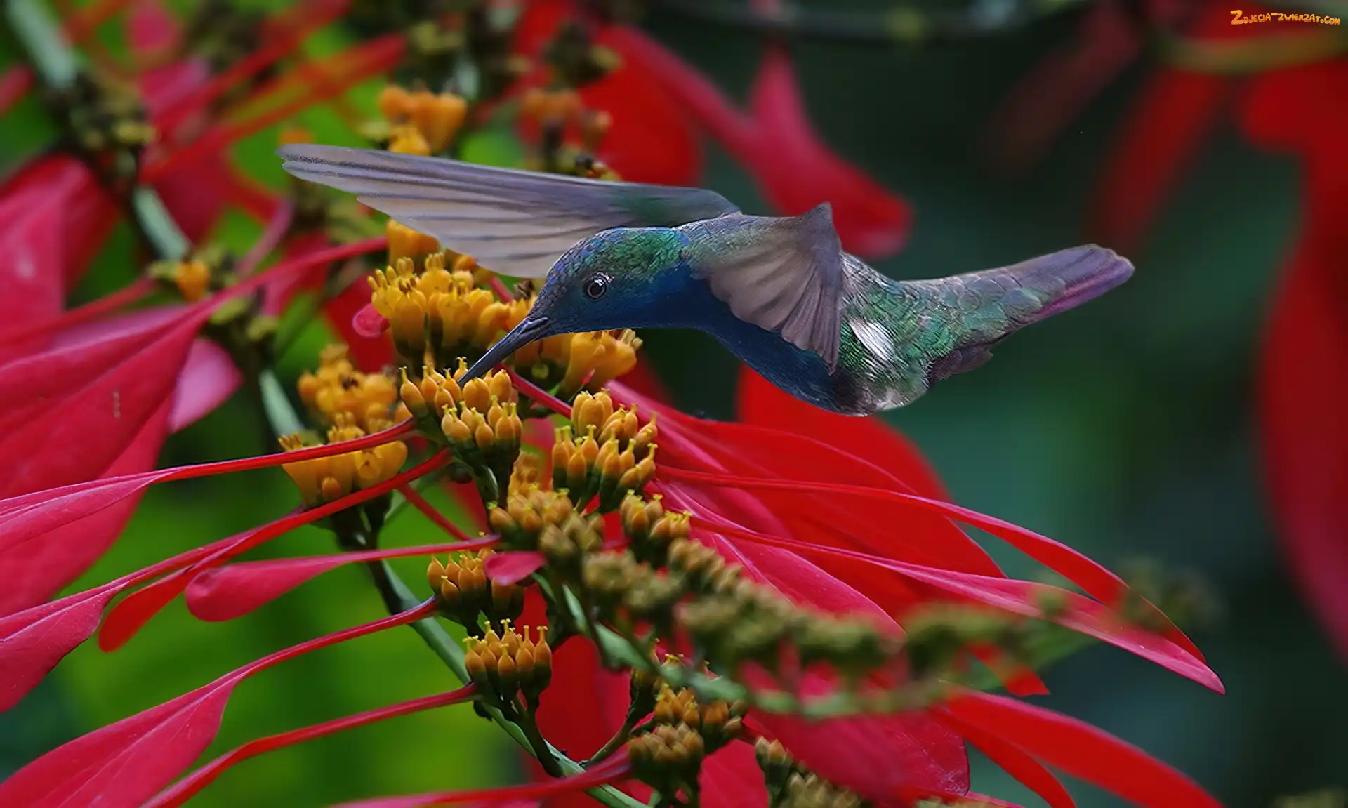 Zdjęcie: Kwiaty, Koliber, Ptak