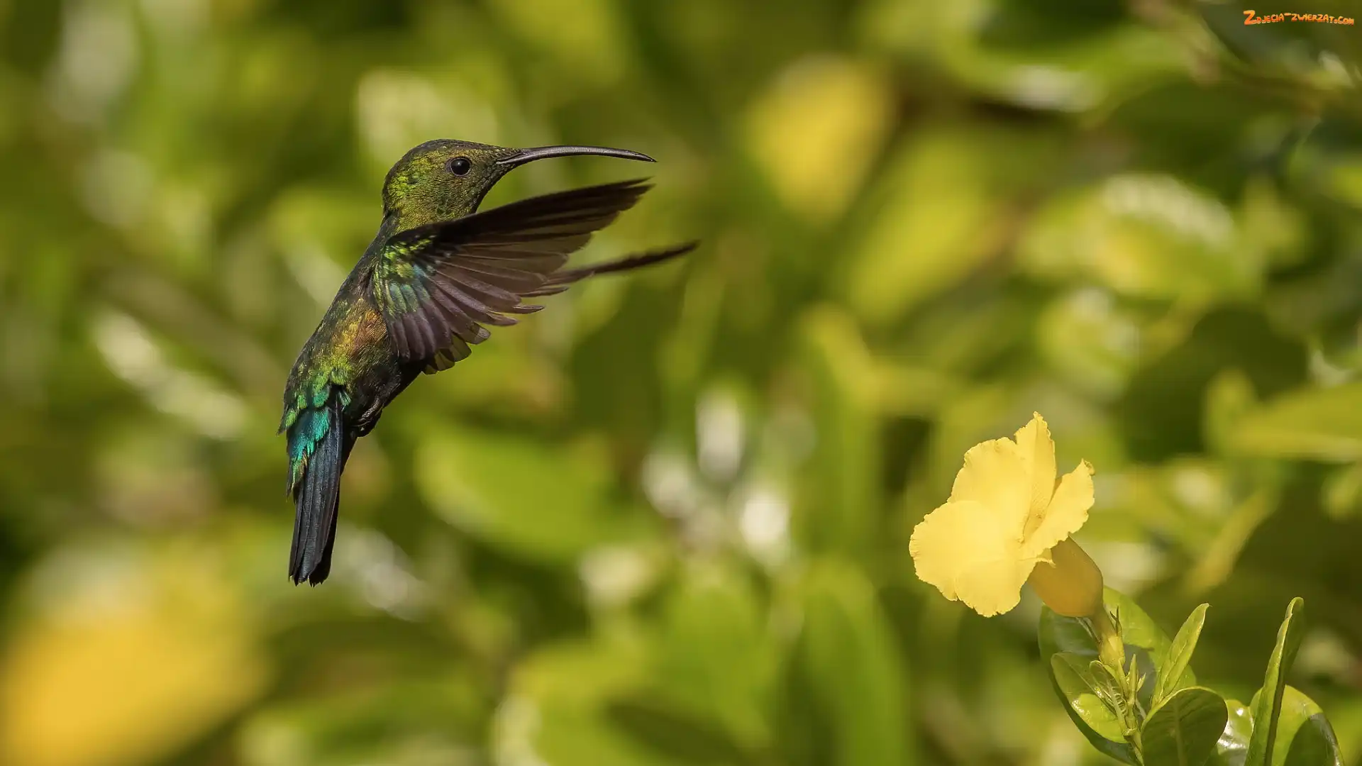 Zdjęcie: Koliber, Kwiat, Ptak, Żółty