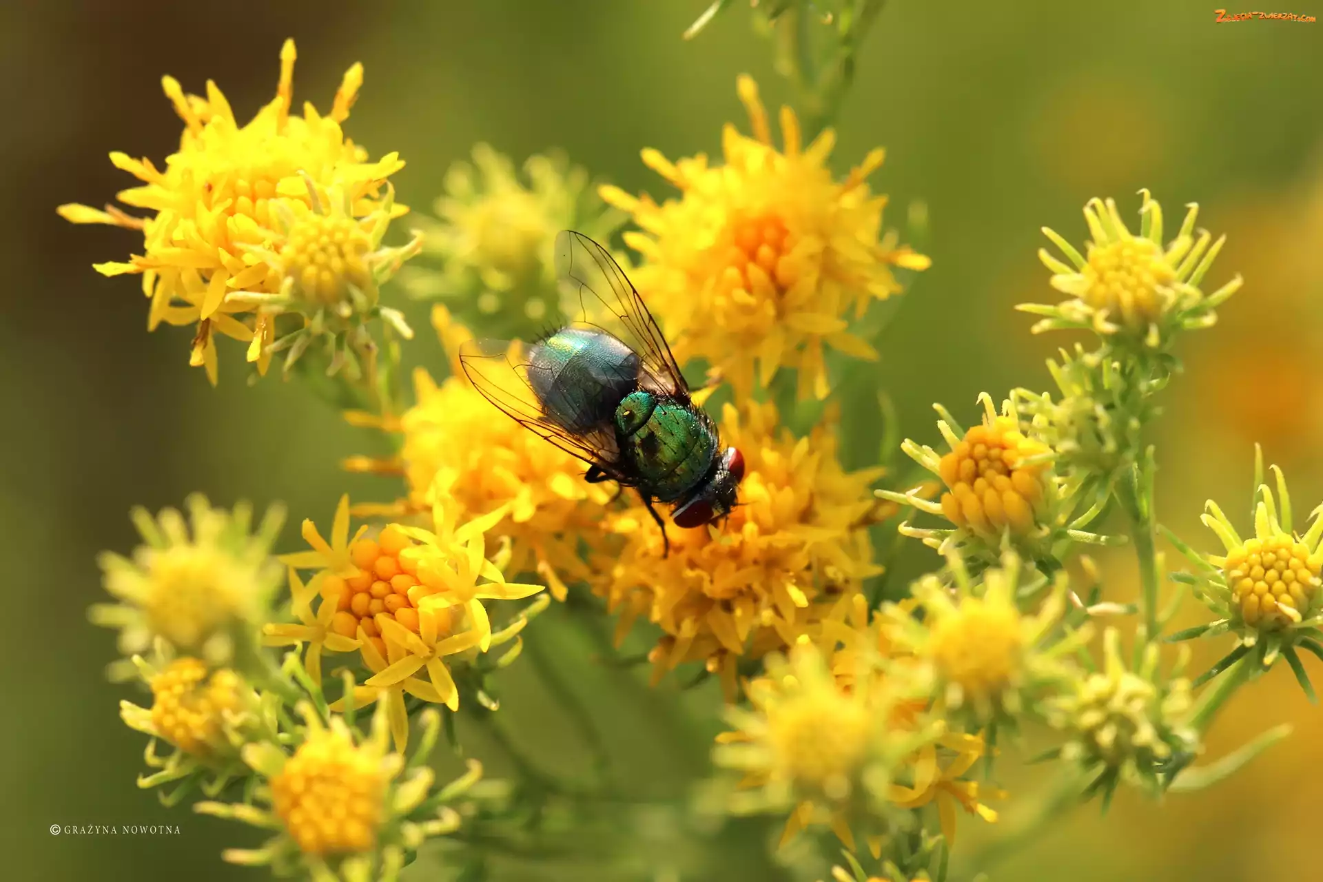 Zdjęcie: Żółte, Kwiaty, Mucha, Kolorowa, Owad