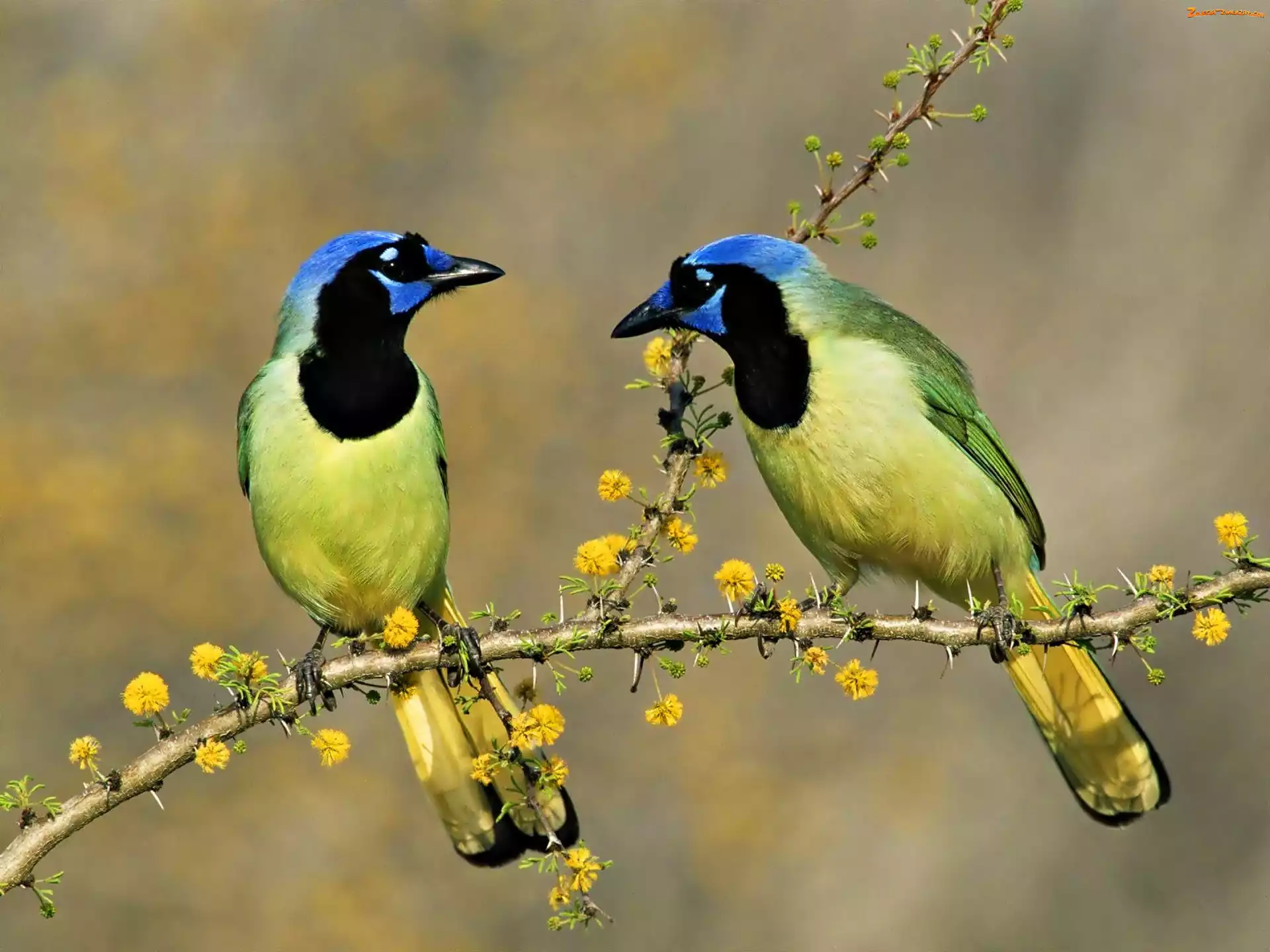Zdjęcie: Kolorowe, Gałązka, Dwa, Ptaki