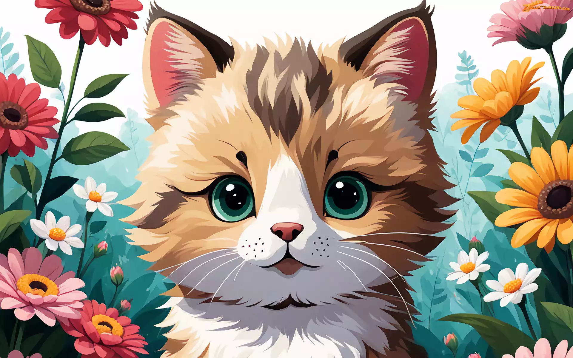 Zdjęcie: Grafika, Kot, Kwiaty, Kolorowe
