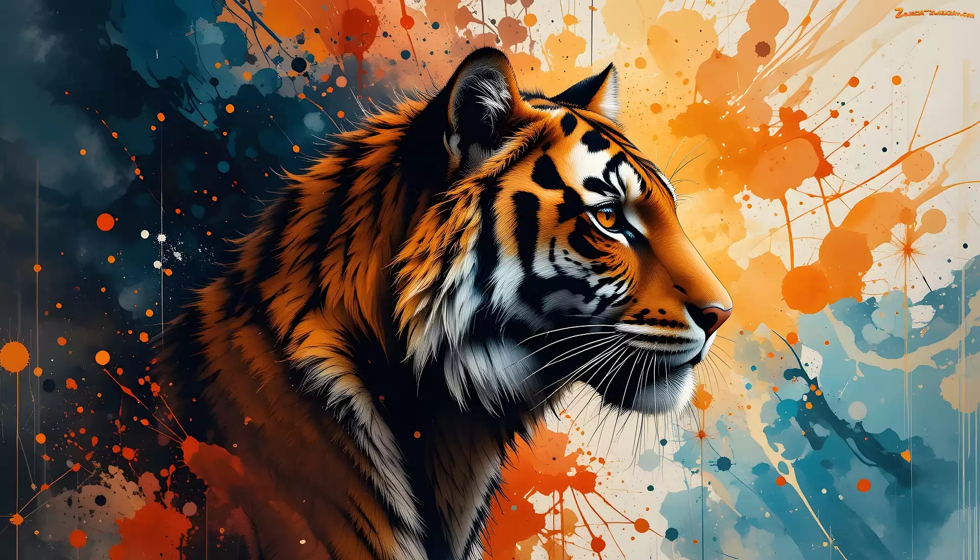 Zdjęcie: Tło, Kolorowe, Grafika, Tygrys, Profil