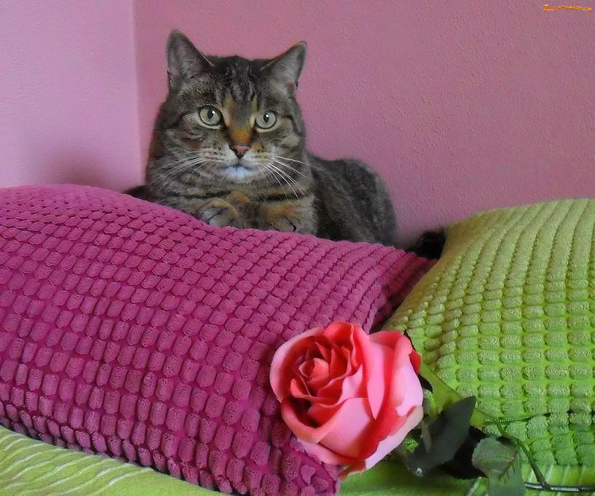 Zdjęcie: Kolorowe, Róża, Kot, Poduszki