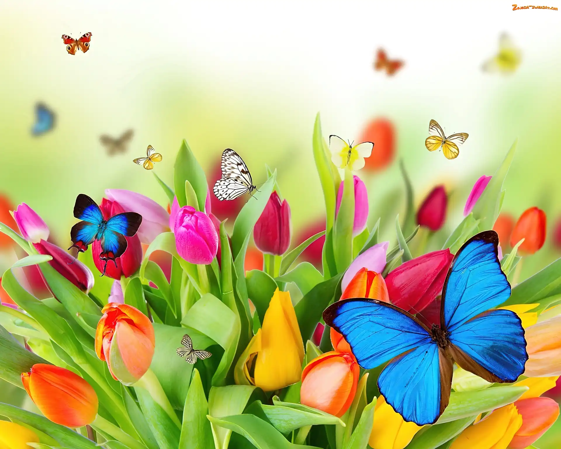 Zdjęcie: Motyle, Kolorowe, Tulipany