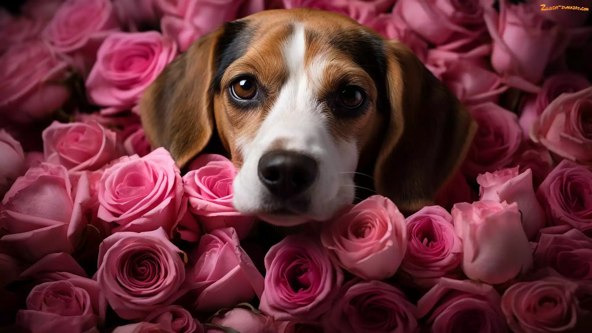 Zdjęcie: Pies, Beagle, Róże, Kolorowe