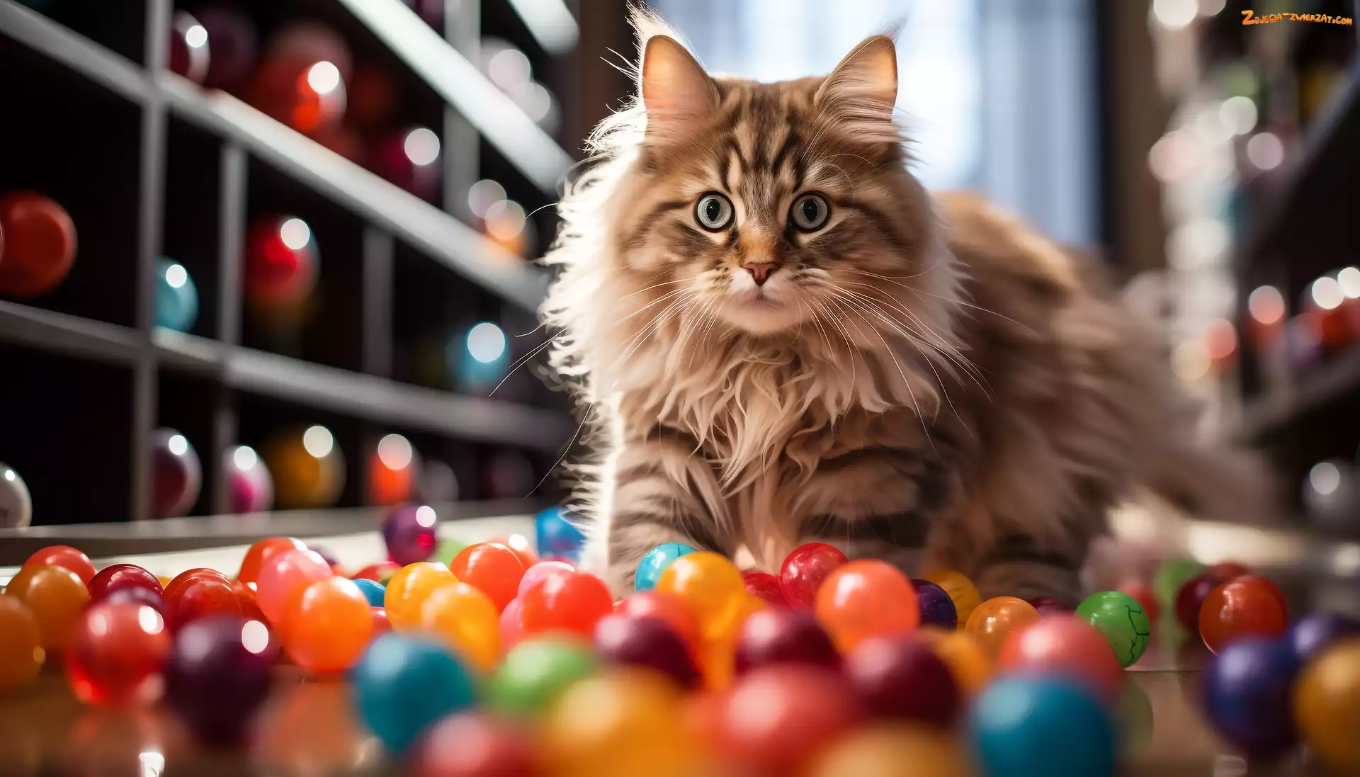 Zdjęcie: Puszysty, Kot, Kulki, Kolorowe