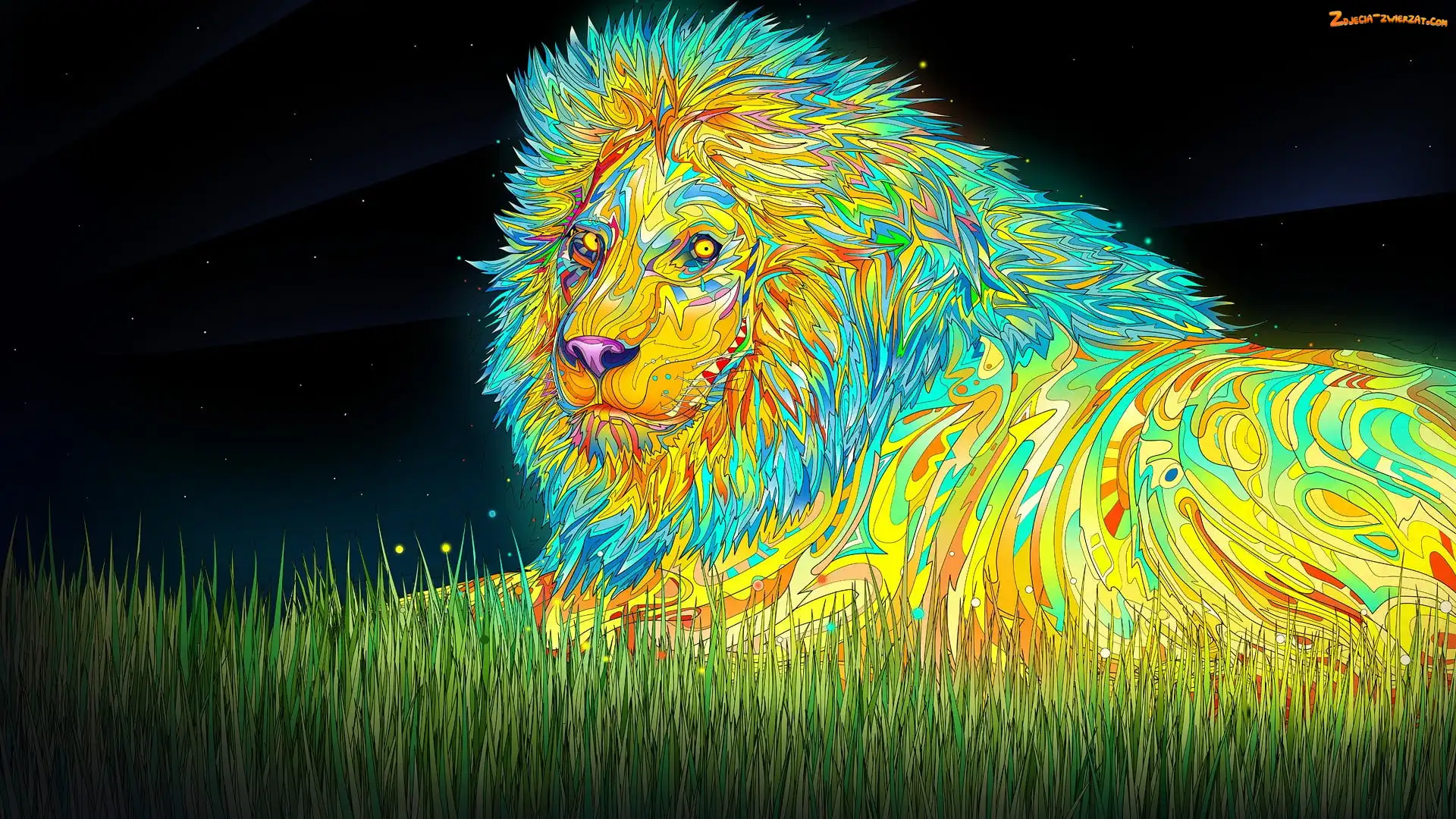 Zdjęcie: Kolorowy, Trawa, Grafika, Lew