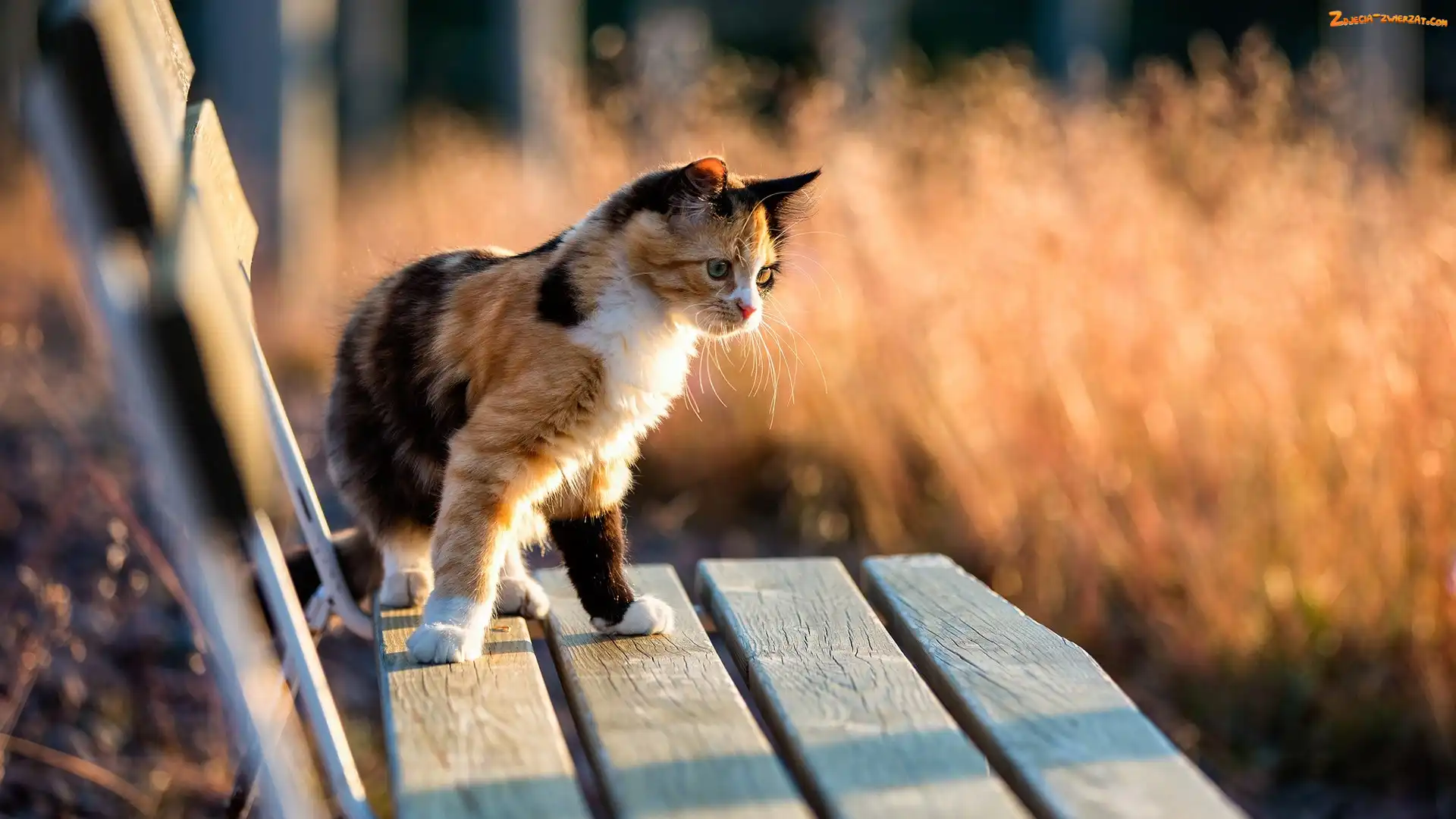 Zdjęcie: Kolorowy, Ławka, Nierasowy, Kot