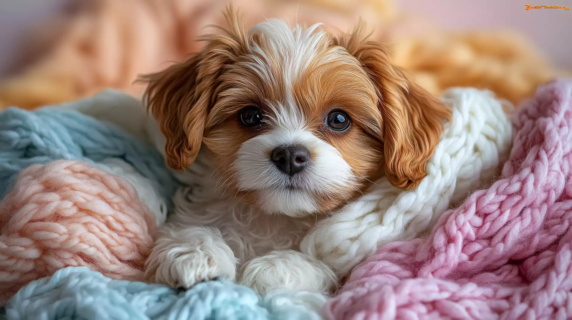 Zdjęcie: Pies, Szczeniak, Koc, Kolorowy