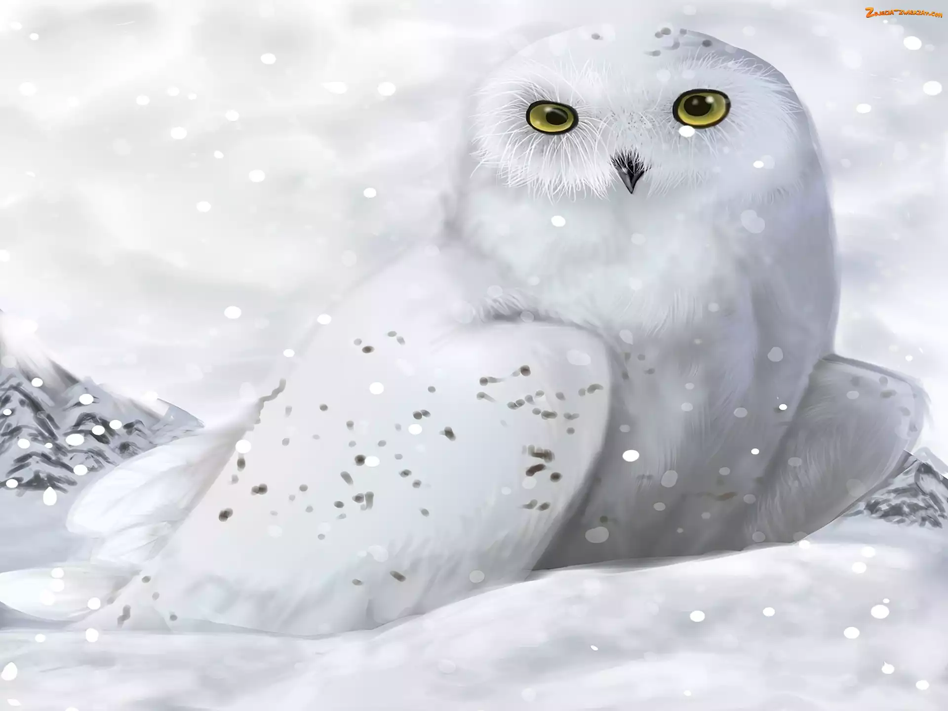 Sowa śnieżna, Grafika, Biała, Śnieg